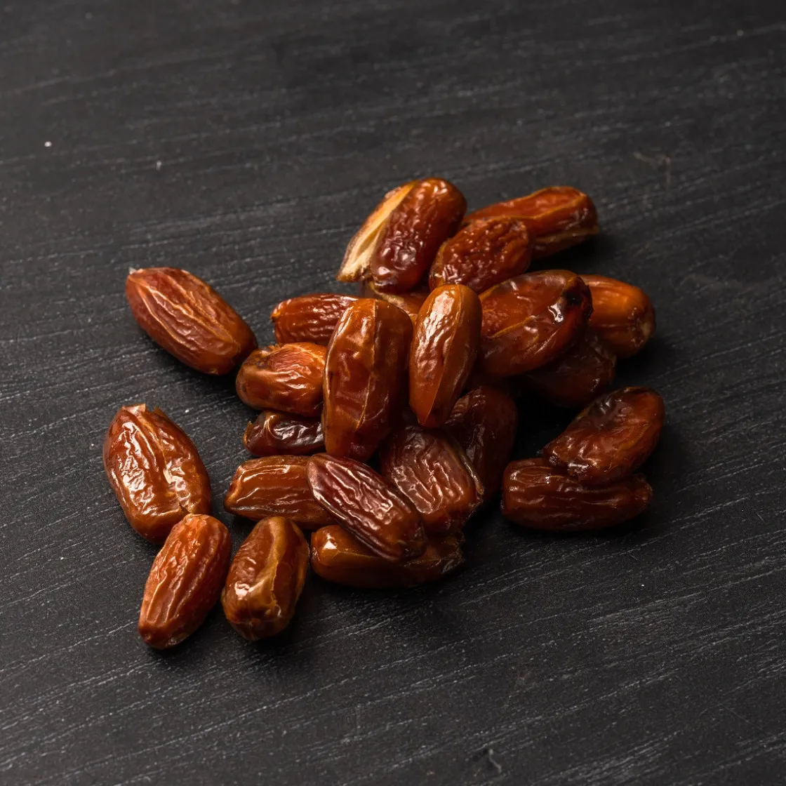 Gedroogde dadels zonder pit. Door hun zoete smaak kunnen ze goed als zoetmiddel worden gebruikt in cakes en desserts. Ze worden ook vaak gebruikt als vulling voor vis of vlees. Gedroogde dadels bevatten veel goede voedingsstoffen, vitaminen en vezels. Dit maakt ze heerlijk als tussendoortje, maar ook lekker in salades of als gevuld hapje.