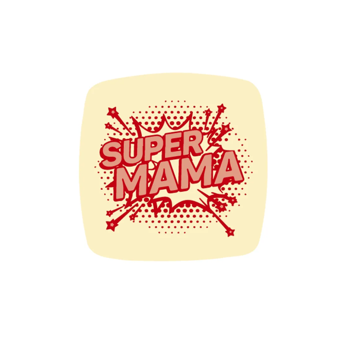 Super Mama! Zet alle mama’s maar in het zonnetje en nietalleen met Moederdag. Deze chocoladedecoratie laat zien hoe goed alle mama’szijn. De decoratie heeft een vierkante vorm met daarop “Super Mama” gedrukt.Je kunt de decoratie gebruiken in combinatie met andere decoraties of alseenvoud. Gebruik de chocoladedecoratie om taarten, petitfourtjes, sloffen,bonbon en andere lekkernijen helemaal af te maken.