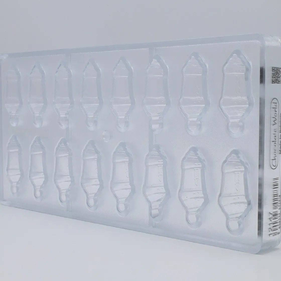 Met de Bonbonvorm Chocolate World Lantaarn (16x) 49x21x20mm kun je prachtige én lekkere bonbons creëren in de vorm van een lantaarn. De lantaarn heeft gedetailleerde versiersels en de mal is perfect om verrassende chocolaatjes mee te maken. De bonbons kunnen gevuld worden met allerlei vullingen, zoals caramel, notenpasta’s of fruitige vullingen.