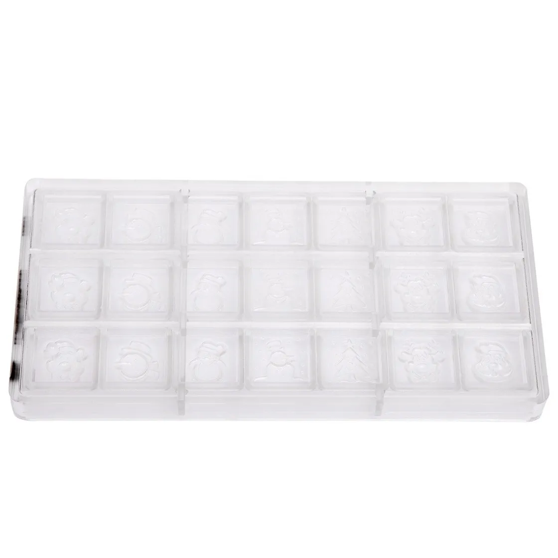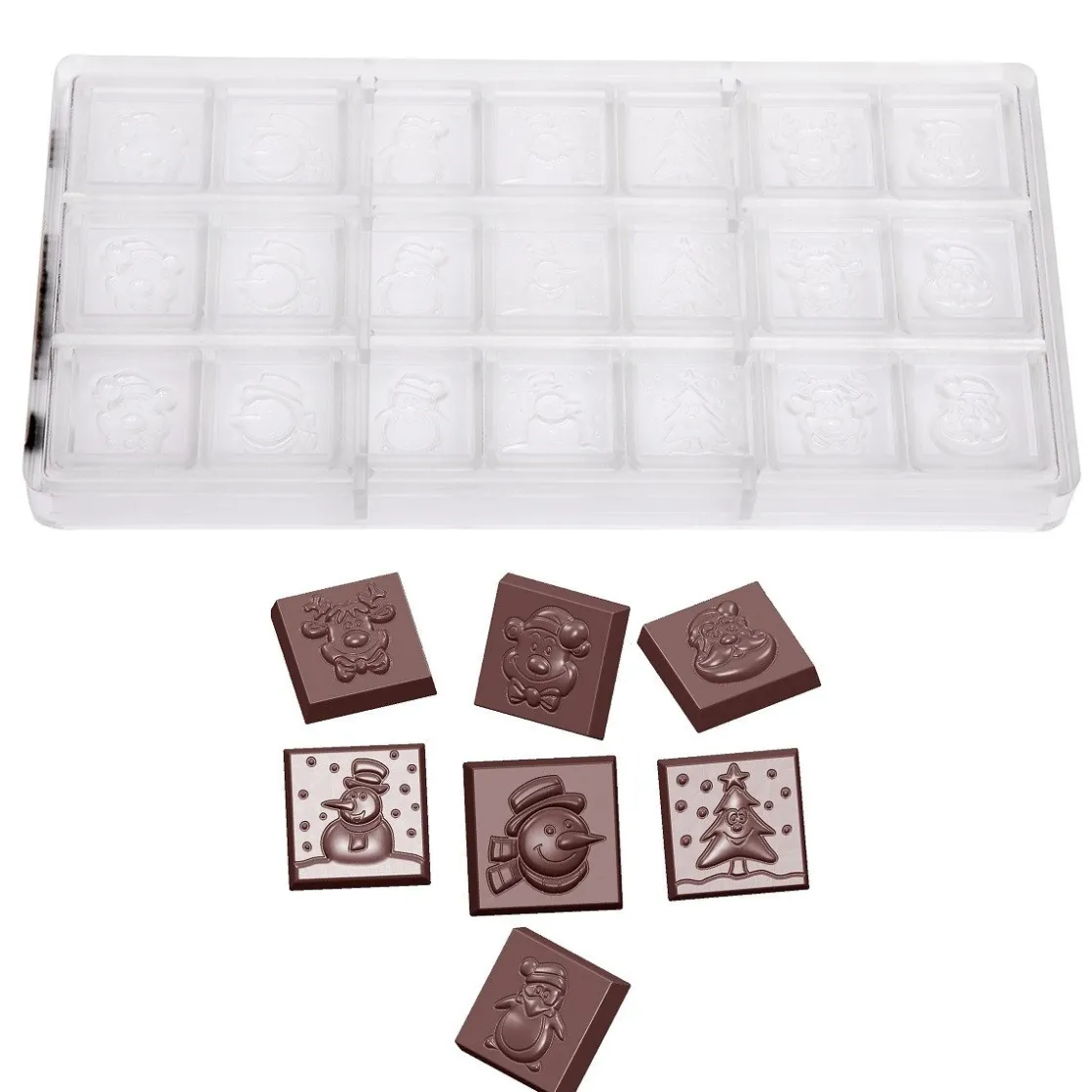 Met deze chocoladevorm maak je prachtige Kerst chocolaatjes. De mal bestaat uit verschillende figuren zoals bijvoorbeeld een sneeuwpop, rendier en kerstboom.