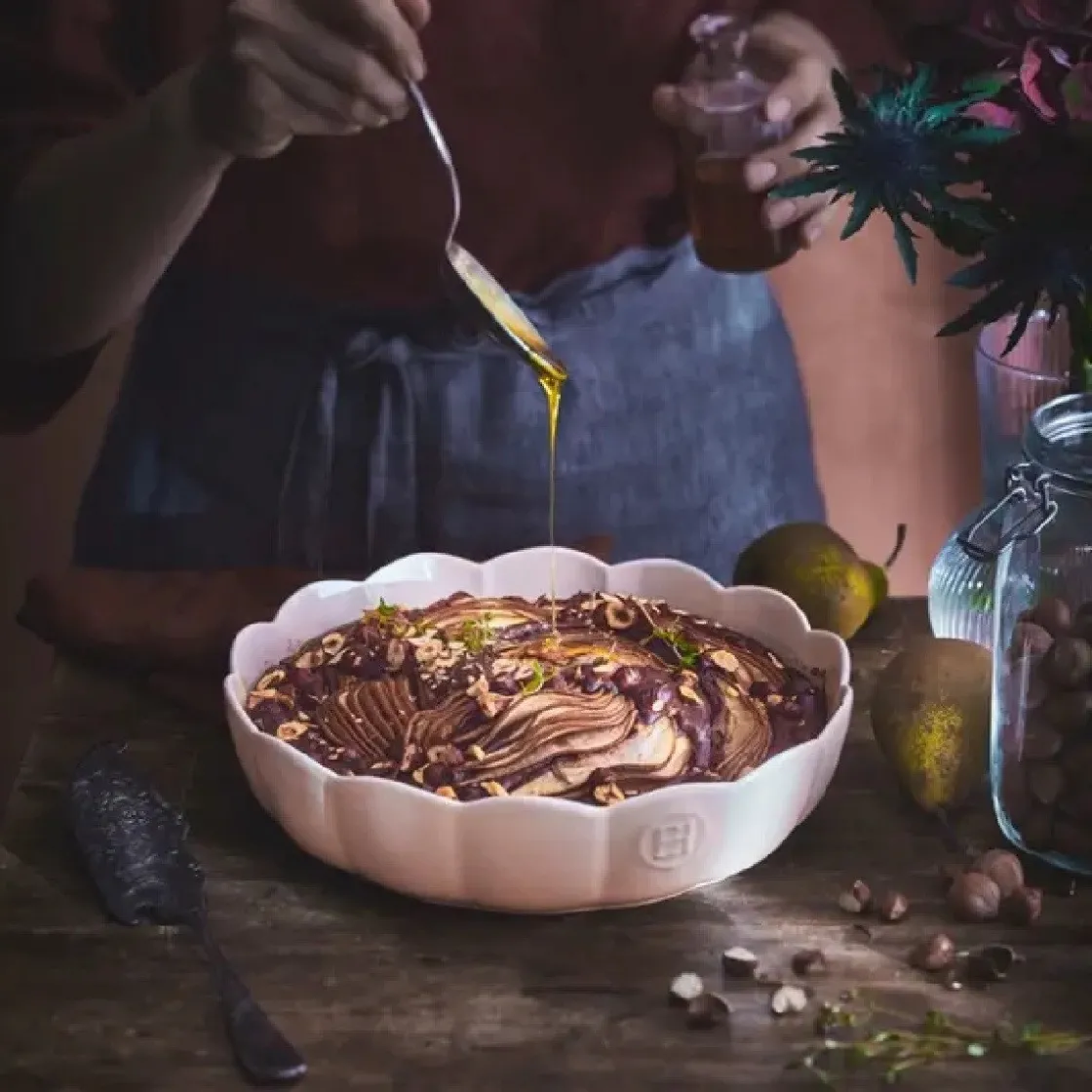 De Emile Henry Madeleine Taartvorm Rond Argile Ø27cm is een sierlijke ronde ovenschaal, waarin je de mooiste baksels kunt creëren. De rand van de schaal heeft prachtige golvende vormen, waardoor deze ook fantastisch te gebruiken is als serveerschaal. Bak en serveer hierin bijvoorbeeld cakes, taarten of desserts!