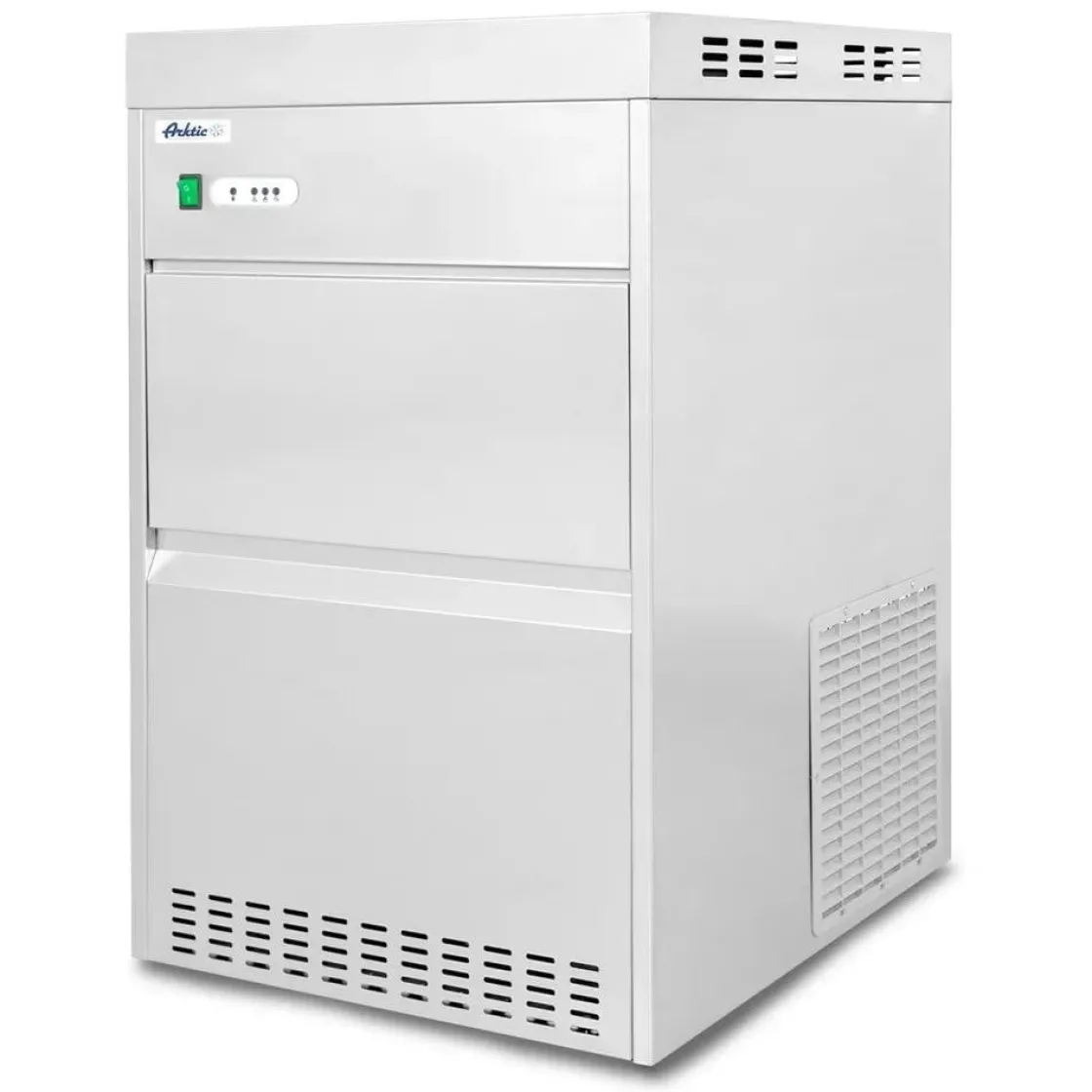 Maakt vlokken ijs, ideaal voor cocktails, etc. Deze uitvoering is vervaardigd uit roestvast staal. Kan tot 20 kg. Ijs opslaan. Ingang en uitlaat slangen en ijsschep inbegrepen. Klimaatklasse: ST. Koelvloeistof: R290. Voorzien van blauw LED-licht.