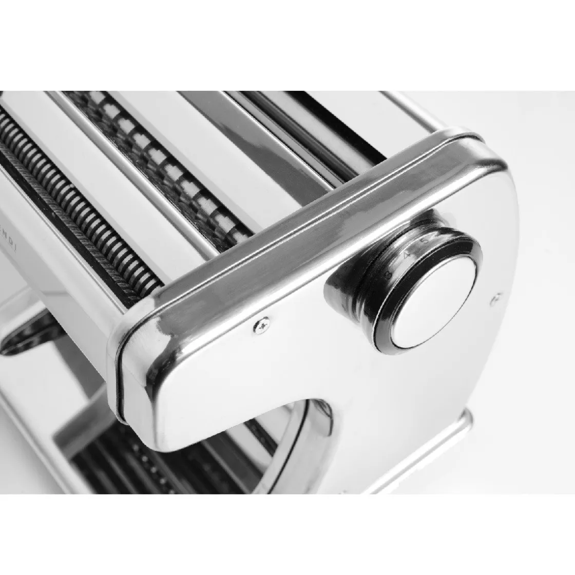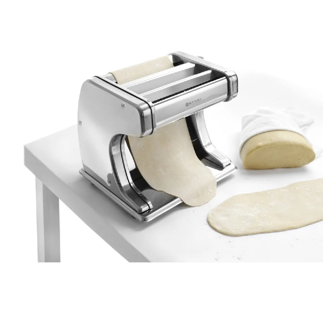 De Hendi Pastamachine Elektrisch is gemaakt van roestvrijstaal en is ideaal om zelf pasta te maken. De eigengemaakte pasta kan maximaal 17 cm breed zijn en de dikte is instelbaar. Je kunt in 7 stappen de juiste dikte bereiken, de standen gaan van 0,2 tot 2,5 mm. De machine heeft drie rollers/snijders: een deegroller, een tagliatelle snijder (6,25mm) en een fettuccine snijder (2mm).