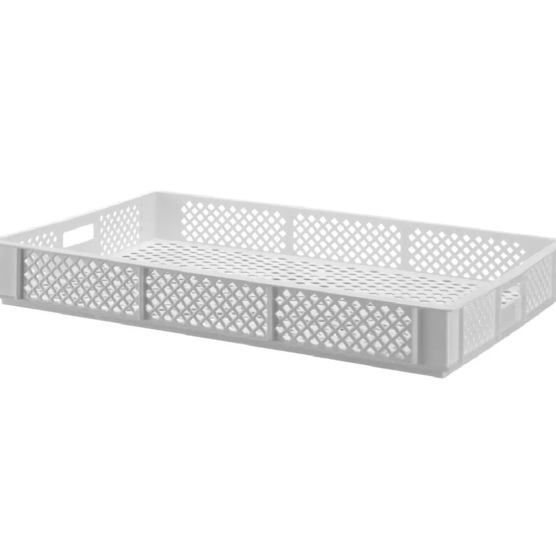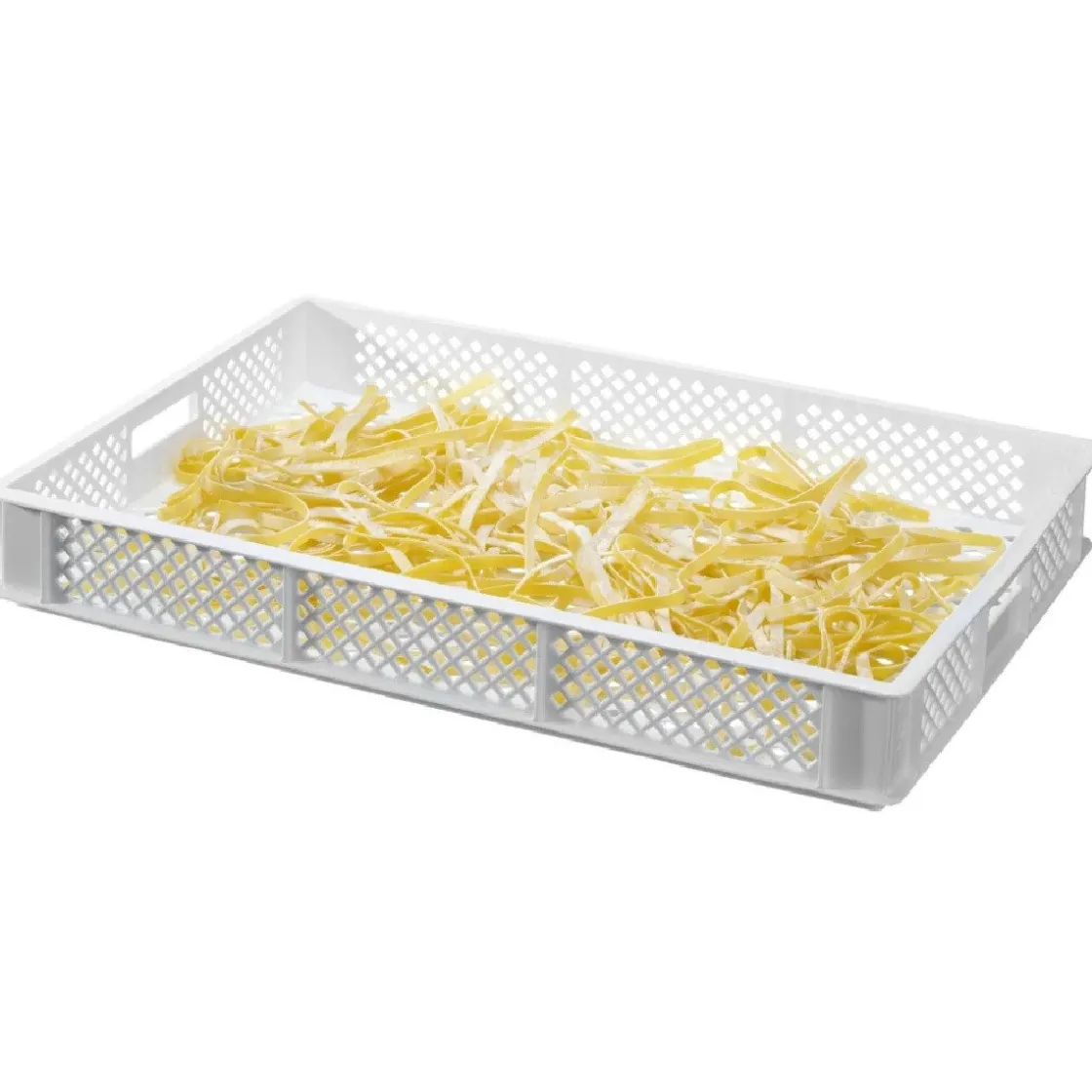 De Hendi Voorraadbak Geperforeerd 60x40x7cm is de perfecte voorraadbak om verse pasta in te laten drogen, op te slaan of te vervoeren. Het geperforeerde oppervlak zorgt voor een goede luchtcirculatie. Bovendien is de bak stapelbaar, waardoor je deze makkelijk kunt opslaan. Overigens kan de voorraadbak ook in de vriezer gebruikt worden.