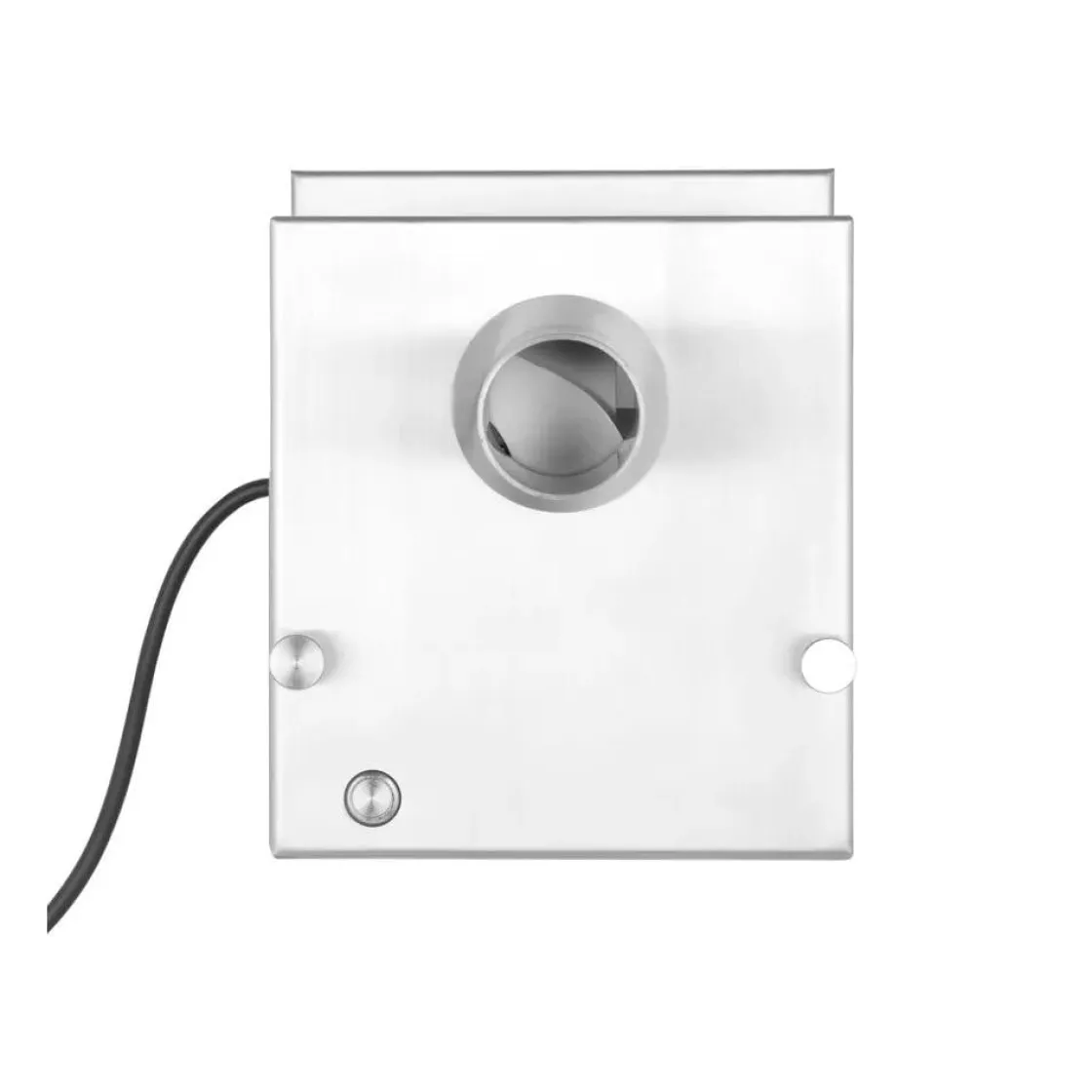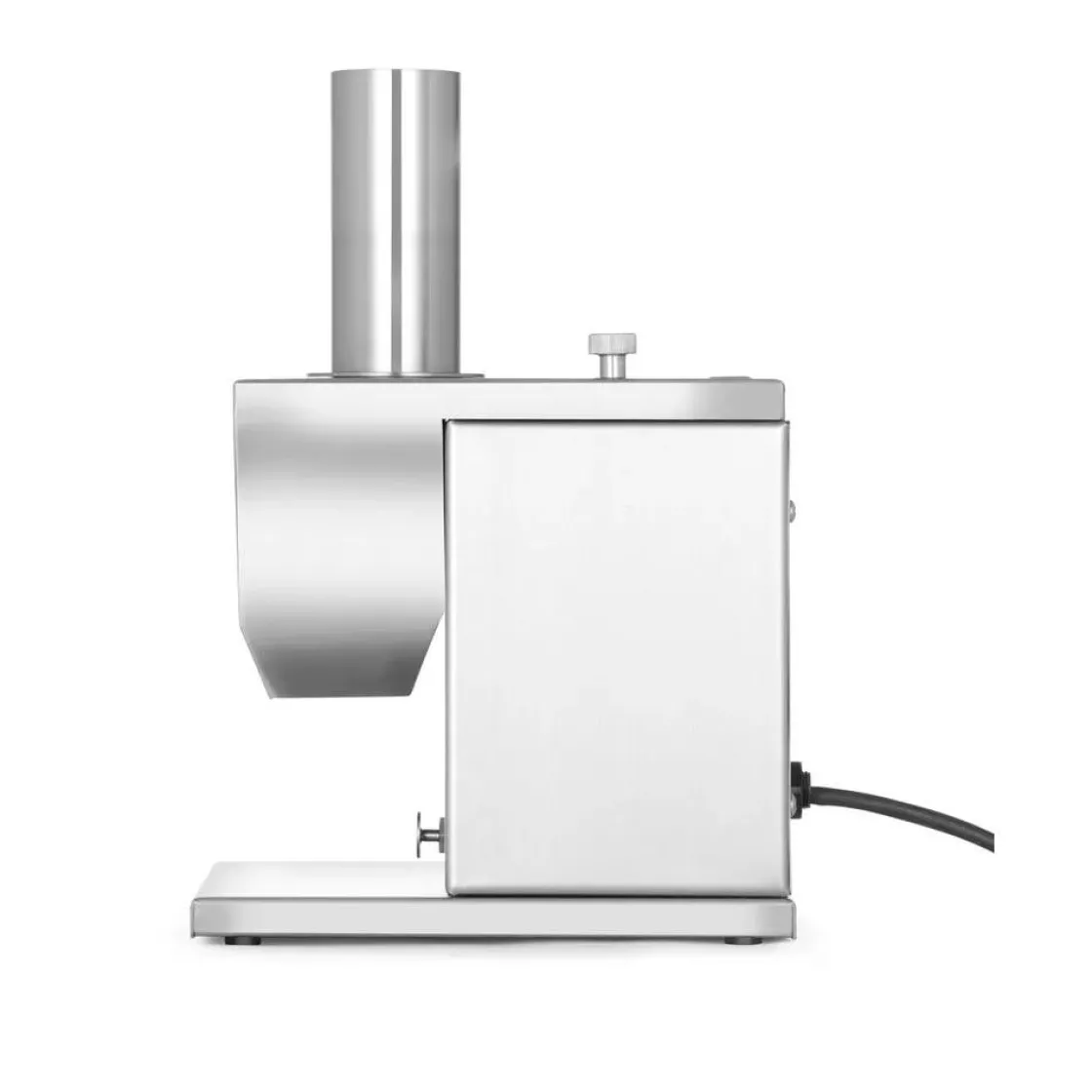 Elektrische worstensnijder met dubbel mes en regelbare snijdikte. Extra lange invoer schacht voor allerlei soorten worst. Maximum diameter van 48 mm.