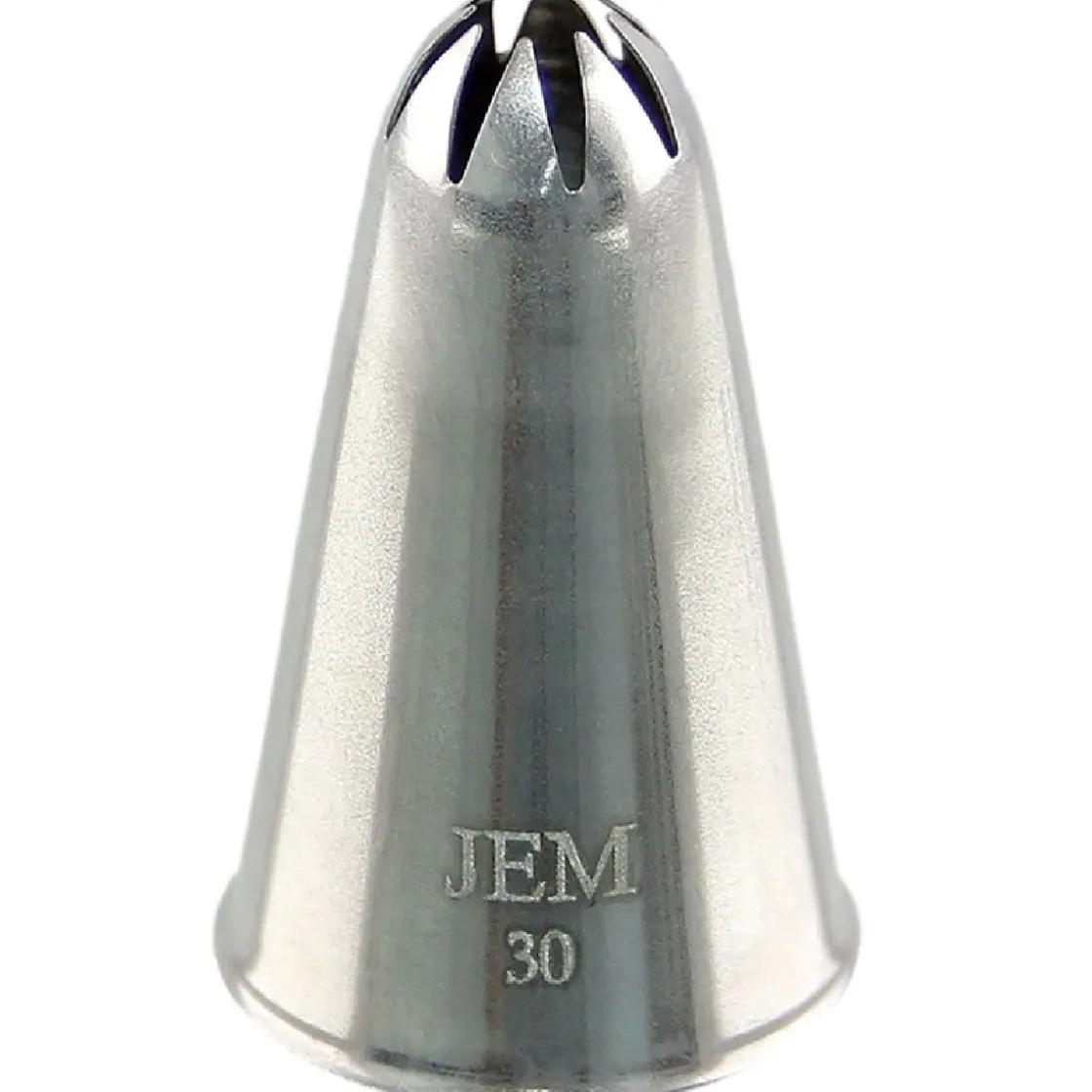 Roestvrijstalen spuitmondje van JEM, van zeer goede kwaliteit. Het spuitmondje bestaat uit één stuk, dus er zijn geen lasnaden aanwezig. Geschikt voor fijn spuitwerk, op bijvoorbeeld koekjes. Met dit spuitmondje kan je bijvoorbeeld stervormige creaties maken.