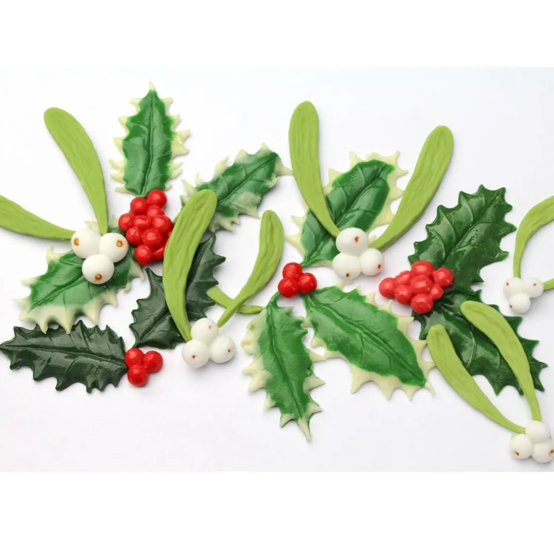 Wie kent hem niet de mistletoe, de mistletoe staat symbool voor vrede en liefde. De maretak wordt vooral veel gebruikt tijdens de kerstdagen om je huis aan te kleden. Met de mold van het merk Katy Sue kleed je niet alleen je huis/zaak aan maar ook al je bakcreaties. De vorm bevat verschillende formaten hulstblaadjes, bessen en mistletoe die geschikt zijn voor het decoreren van Kerst thema taarten, cupcakes en meer. Elke keer weer heb je het zelfde resultaat door het fijn gedetailleerde ontwerp.