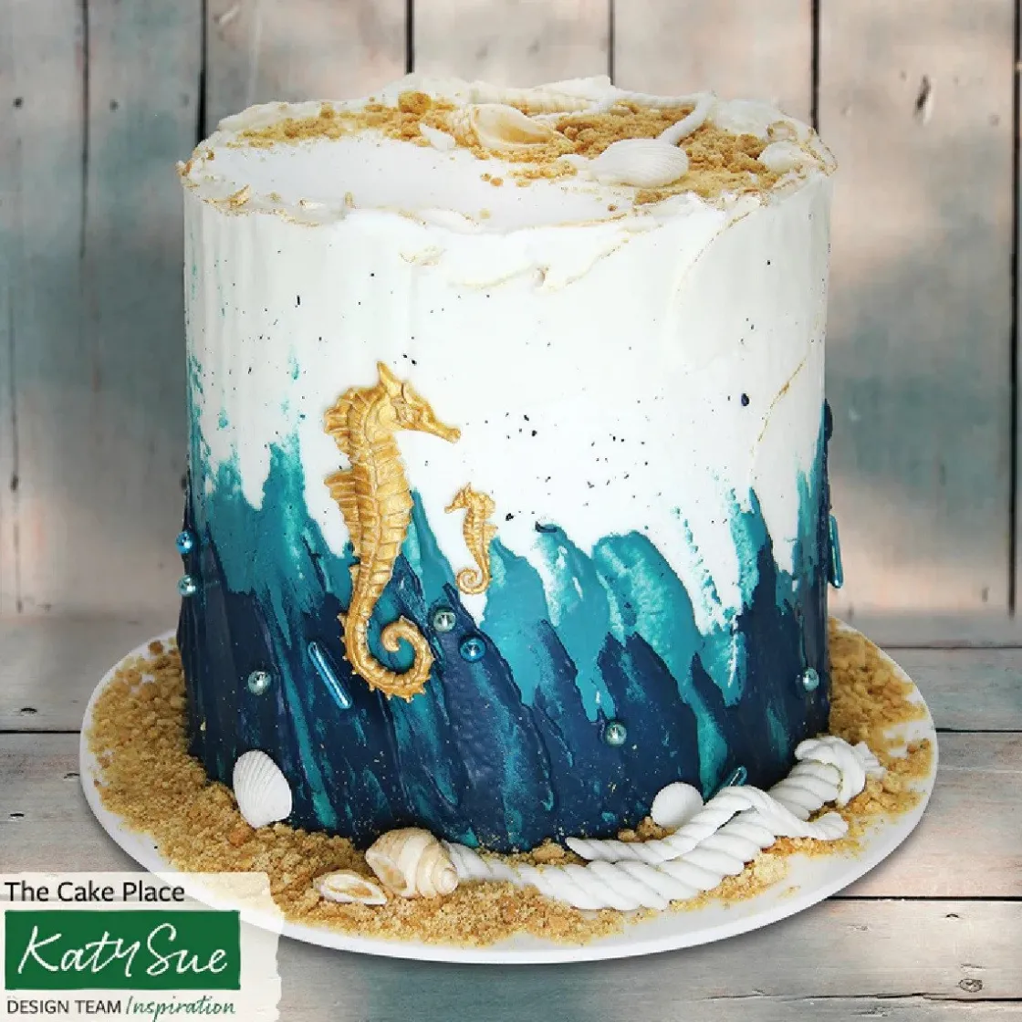 De Katy Sue Mold Zeepaardjes bevat 2 grote en 2 kleine zeepaardjes. Zeepaardjes zijn erg leuk ter decoratie van baksels met het thema onderwaterwereld. Met deze mold kun je eetbare decoraties maken om daarmee vervolgens je zelfgemaakte taarten, cupcakes of koekjes te versieren. Deze mal is goed te combineren met de andere Katy Sue Molds zoals de bubbels en parels of de vis, zeewier en koraal. De mold kan gebruikt worden met fondant, modelleer pasta, marsepein, chocolade, snoep en gekookte suiker.
