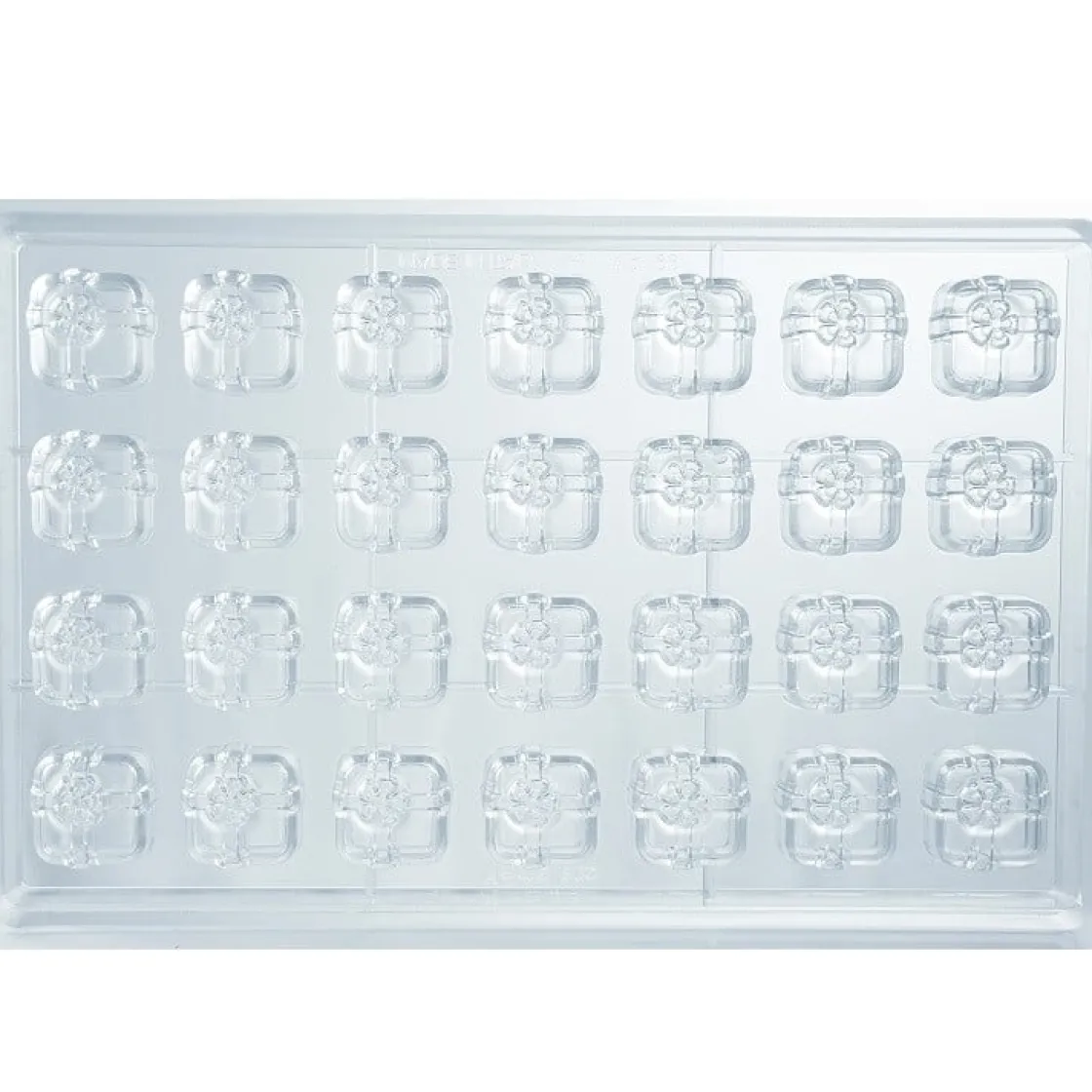 Bonbonnetjes in de vorm van een klein cadeautje! Hoe leuk is dat? Met deze bonbonvorm maak je er in één keer 28 tegelijk! Super leuk om iemand mee te verrassen! Of gebruik ze in combinatie met onze andere chocolademal voor een grote cadeabox en leg ze daarin! De mal is gemaakt van polycarbonaat. Dit is zeer stevig, duurzaam en hittebestendig materiaal. Gebruik je creativiteit en maak cadeautjes in verschillende kleuren en met diverse vullingen. Denk hierbij aan praline, nootjes of rozijntjes. Eet smakelijk!