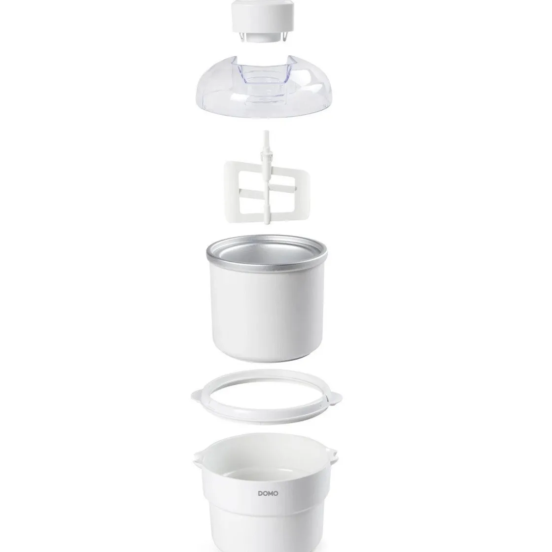 Zelf heerlijk roomijs maken? Dat kan met deze roomijsmachine van het merk Domo. De uitneembare vrieskom heeft een capaciteit van 1 liter. De machine beschikt over een transparante deksel waardoor je het ijsproces kunt volgen. Ook heeft de deksel een vulopening zodat je gemakkelijk extra ingrediënten kunt toevoegen. Wordt geleverd met een receptenboekje, zodat je gelijk aan de slag kunt! Beschikt niet over een timer.