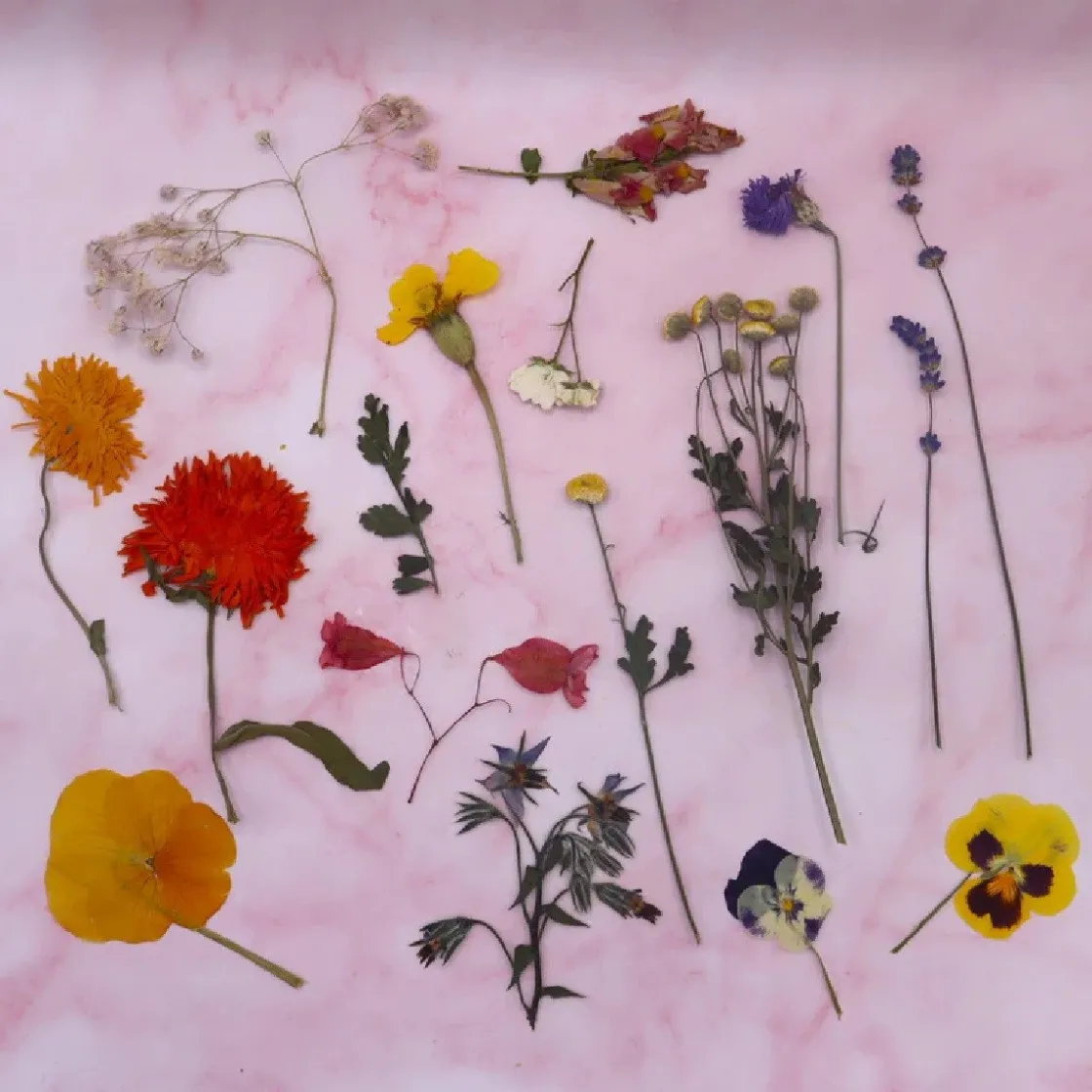 De Eetbare Geperste Bloementuin met Steel (15 stuks) is van Nederlandse bodem en wordt op een duurzame manier geteeld. Schadelijke chemicaliën worden zoveel mogelijk vermeden. Deze geperste bloemen zijn een mengeling van verschillende bloemen en de inhoud kan variëren per seizoen.