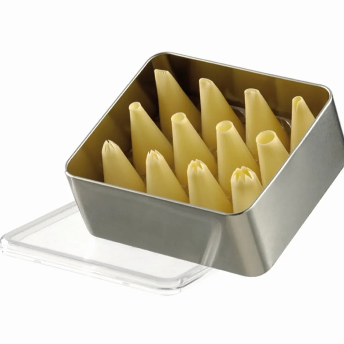 Met deze kunststof spuitmondjes set kun je echt alle kanten op. De doos bevat 12 verschillende grote spuitmondjes (6cm hoog), met een kartel, gladde en garneer sluitopening. Je kunt de spuitmonden gebruiken om prachtige toeven te maken op cupcakes, koeken, taarten of andere heerlijke creaties. Naast ze voor toeven te gebruiken kun je ze ook gebruiken om prachtige decoraties te maken.