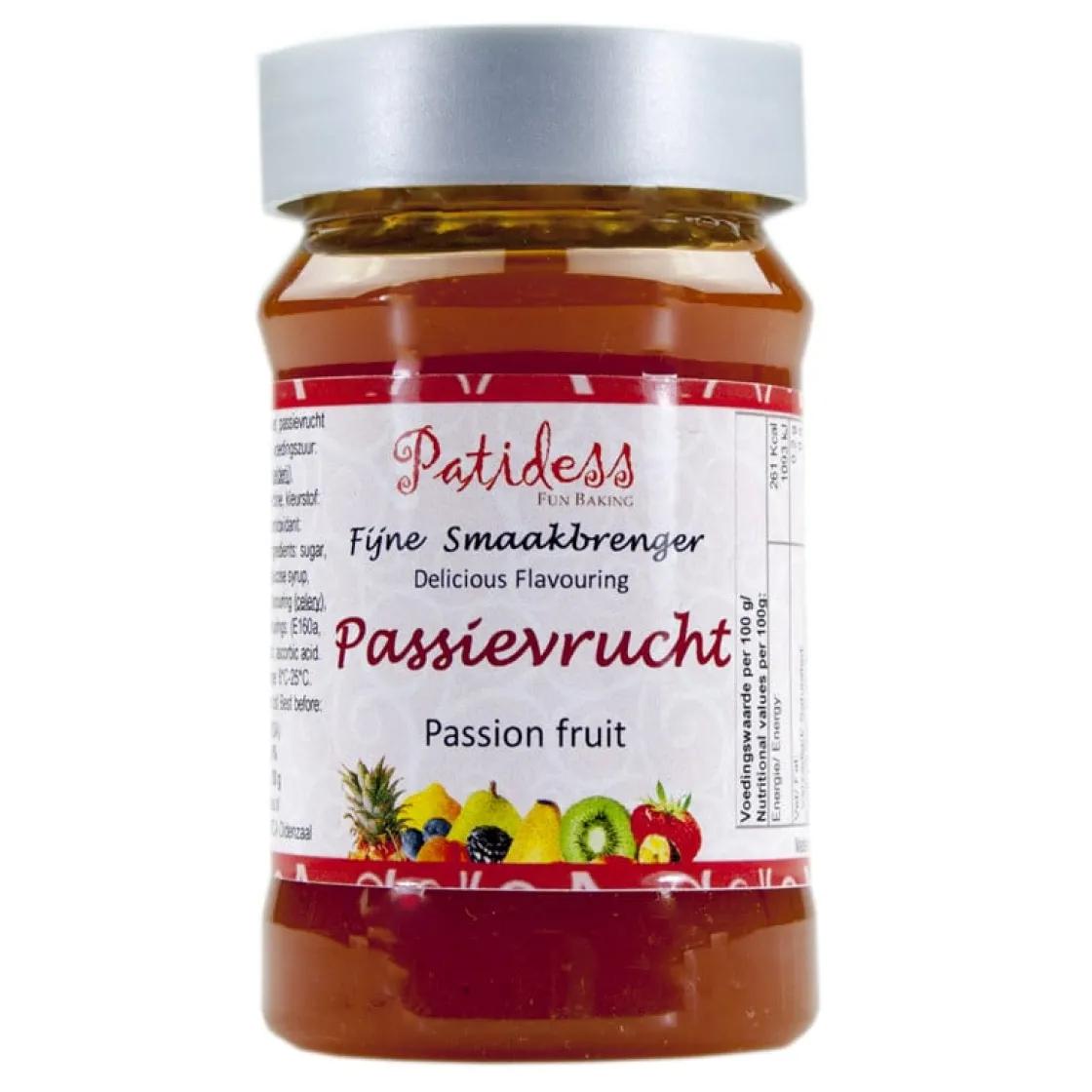 Passievrucht, een heerlijke tropische smaak maar ontzettend lastig om te kopen. Maar gelukkig is er Patidess Passievrucht; een natuurlijke smaakmaker die de smaak geeft van echte passievruchten. Misschien nog wel het grootste voordeel: Patidess Passievrucht bevat geen pitjes. Patidess Passievrucht is natuurlijk toe te voegen aan de gebruikelijke taartvullingen, botercrèmes, ijs of bavaroise. Daarnaast kun je de smaakpasta ook toevoegen aan je appeltaartvulling. Op deze manier krijgt die oer-Hollandse klassieker een verassend tropisch tintje.