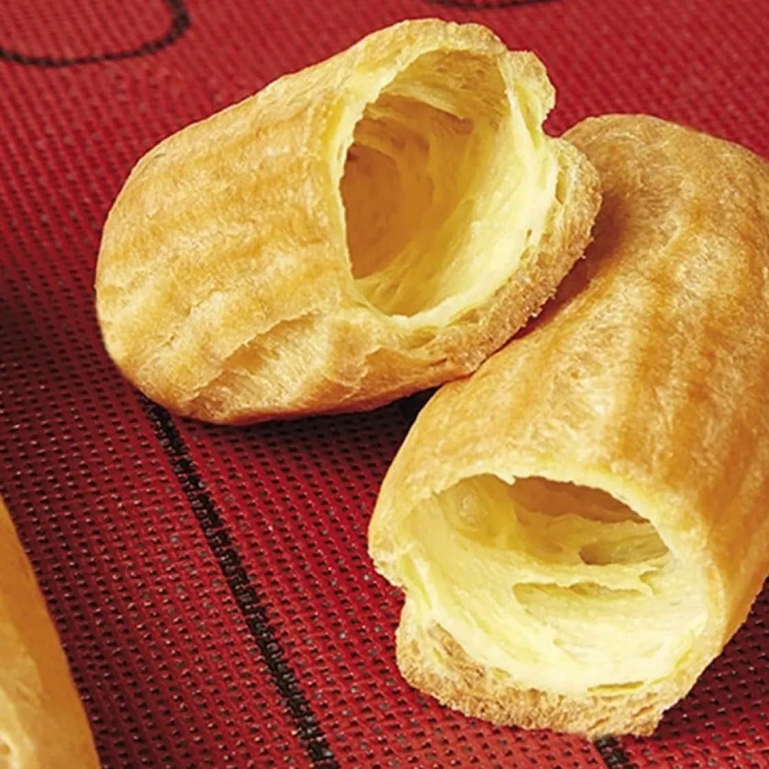 Bakmat van Pavoni om eclairs te maken. Deze mat is micro-geperforeerd en non-stick, voor het beste bak-resultaat. In totaal kunnen er 20 eclairs tegelijk worden gebakken op de mat.