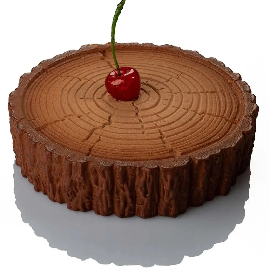 De Pavoni Siliconen Vorm Boomstam Ø18,5×5,5 cm is een mal waarmee je taarten of desserts de uitstraling van een echte houten boomschijf geeft. De gedetailleerde structuur van jaarringen en de bastachtige zijkant zorgen voor een natuurgetrouw effect.