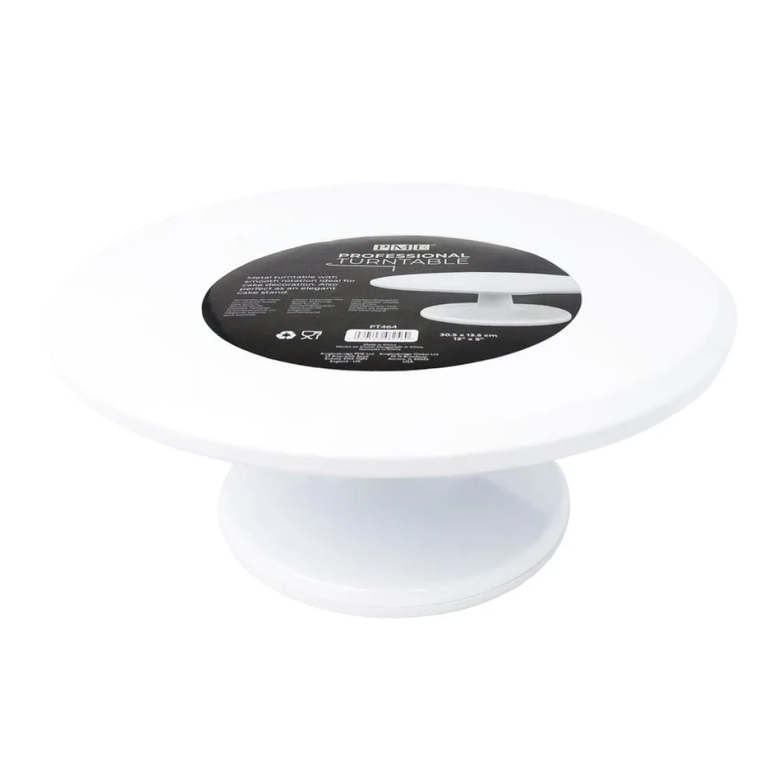 Dit professionele draaiplateau is gemaakt voor het bekleden van taarten met bijvoorbeeld een ganache, boter crème of icing maar is ook perfect als hulpmiddel bij het airbrushen en schilderen van verschillende creaties. Het draaiplateau is zeer solide en heeft een slipvaste siliconen basis waardoor er erg gemakkelijk mee te werken is.