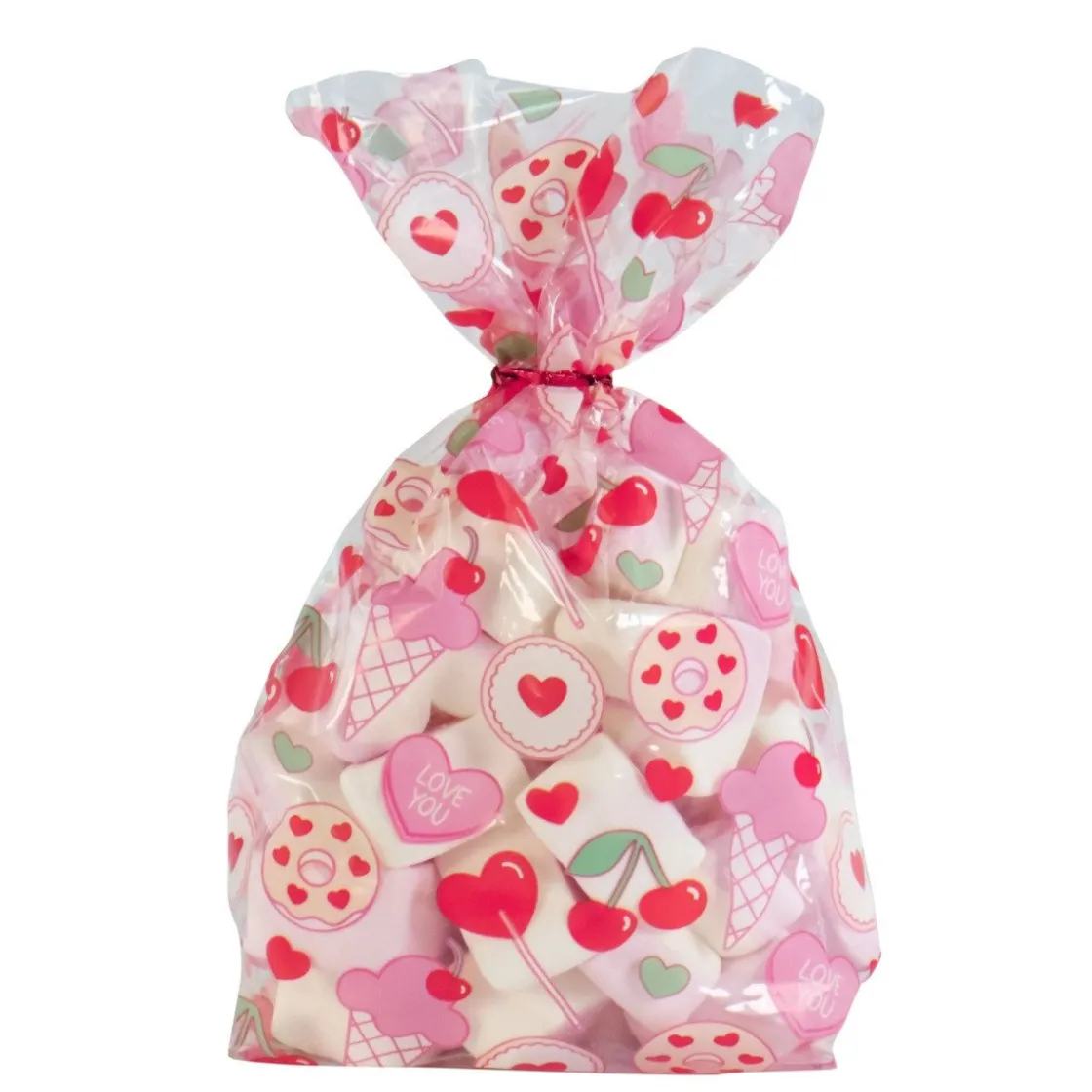 De PME Traktatiezakjes Zoete Liefde 20st staat bomvol zoetigheden. Op de zakjes vind je donuts, lolly’s, ijsjes en kersen. Speciaal voor Valentijn is deze tevens gedecoreerd met hartjes en de tekst ‘Love you’. Een ideaal zakje om je valentijnscadeaus in te verpakken.