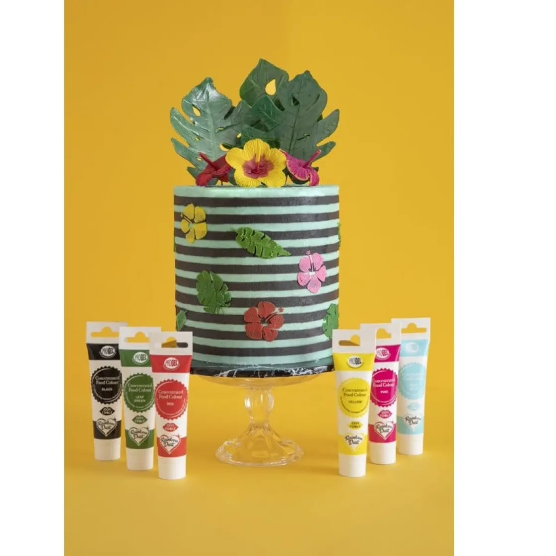 Heb je zin in een vrolijk kleurtje, voeg dan wat ProGel kleurstof van het merk Rainbow Dust toe. Met deze gel verander je een saaie witte fondant/marsepein in een zwarte , rode, groene, roze, gele of blauwe botercrème/fondant/marsepein. De tubes gaan lang mee, doordat je maar een kleine hoeveelheid kleurstof nodig hebt om je creaties een diepe en rijke kleur te geven. De kleurstof ik ook geschikt om biscuitdeeg of ander deeg een mooie kleur te geven.