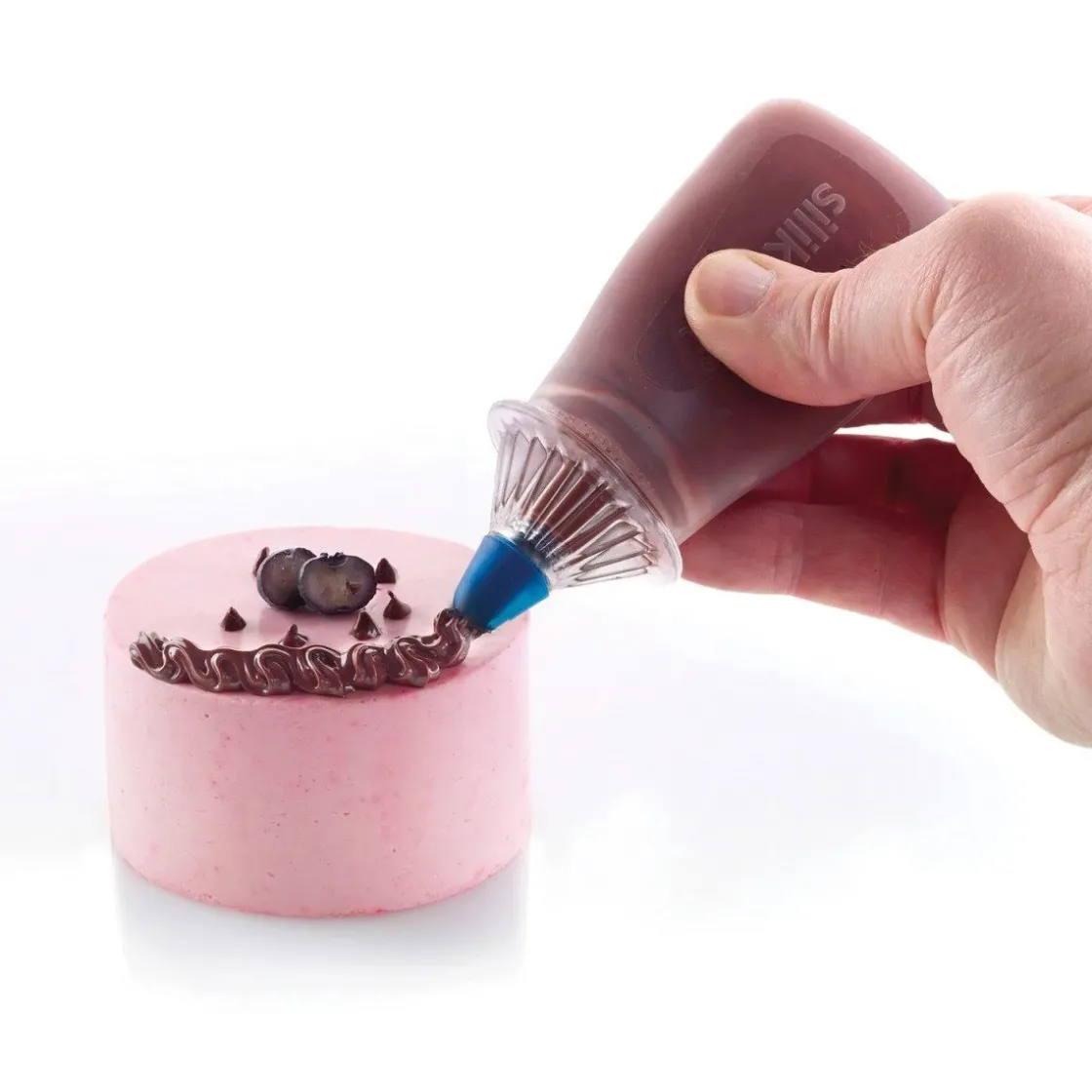 De Silikomart Wonder Cakes decoratiepen is gemaakt van Transparant siliconenrubber en heeft een inhoud van ongeveer 60ml. Met de Silikomart Wonder Cakes decoratiepen schrijft of tekent je met alles wat eetbaar en dik-vloeibaar is op vrijwel elke eetbare ondergrond. Deze decoratiepen wordt geleverd met 4 verschillende spuitmondjes.