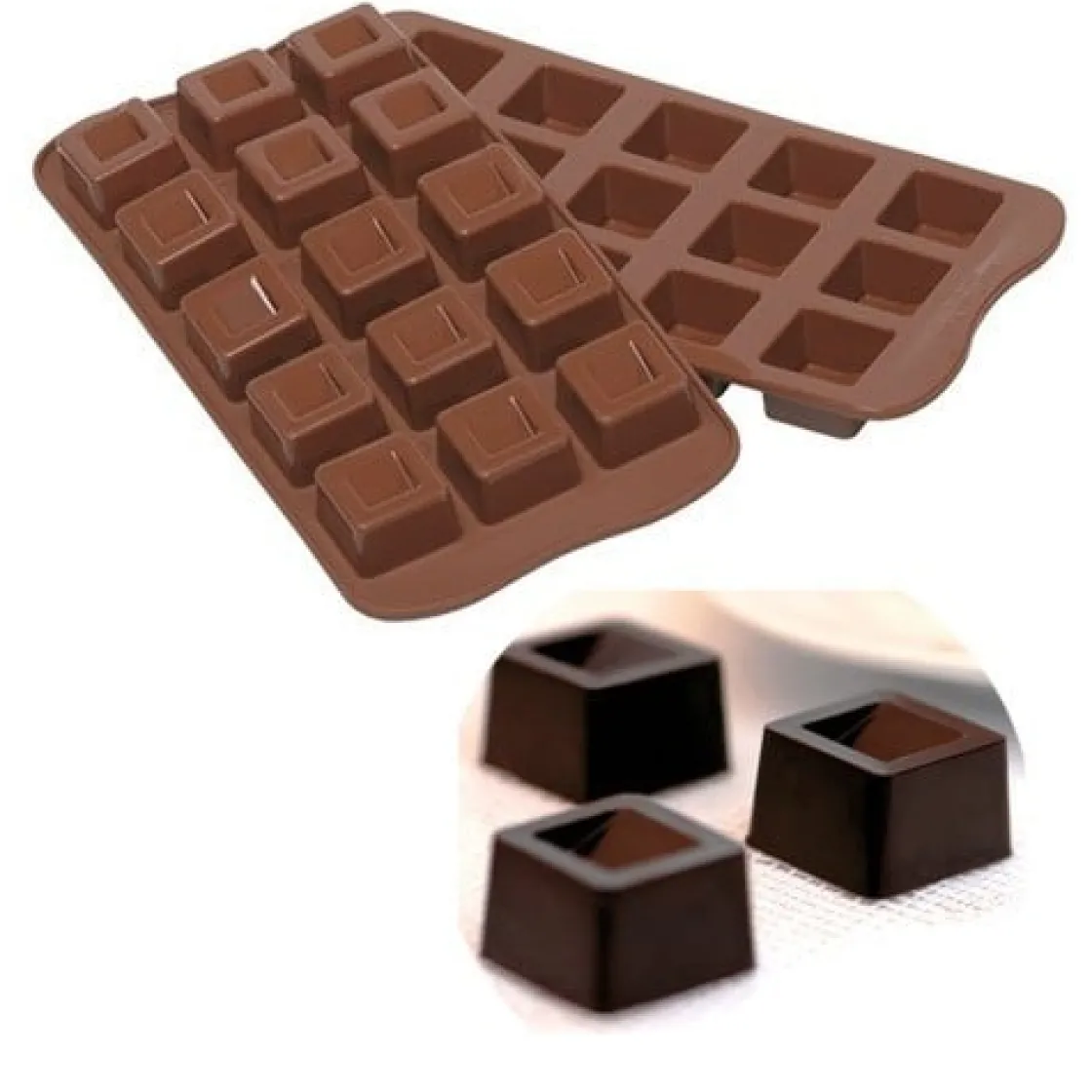 Deze chocolade bonbonvorm heeft een kubus vorm en is gemaakt van siliconen rubber. Met de bonbonvorm siliconen kubus maakt u in een handomdraai mooie chocolaatjes of lekkere bonbons. Door het flexibele siliconenrubber ben je verzekerd van probleemloos lossen. De bonbonvorm is geschikt voor vriezen (tot-60°C) en bakken (tot 230°C).