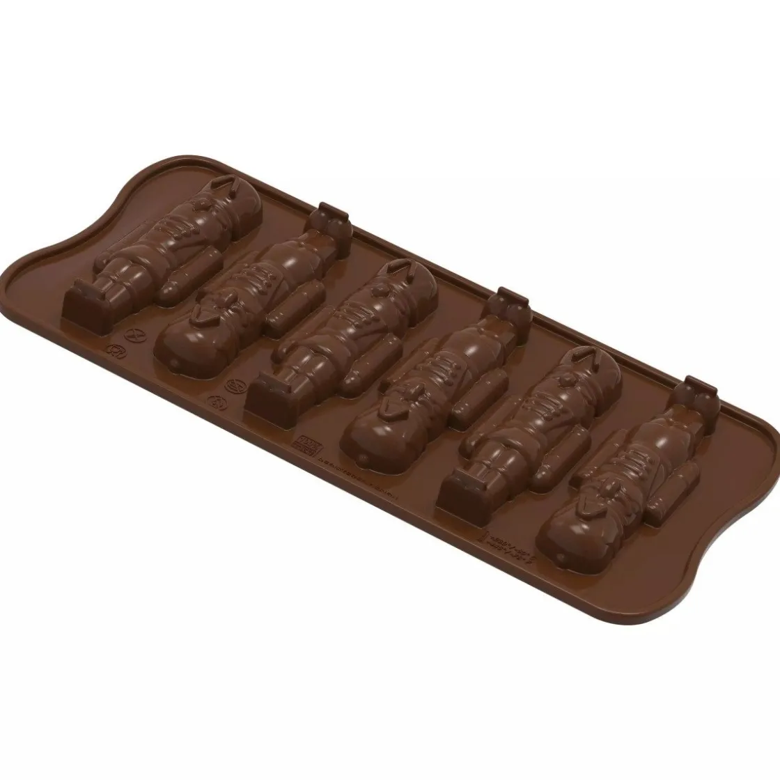 Met de Silikomart siliconen bonbonvorm Notenkraker (6) creëer je heerlijke, feestelijke chocolaatjes met het herkenbare ontwerp van een notenkraker. Elke vorm is circa 2,6 x 8,4 centimeter.