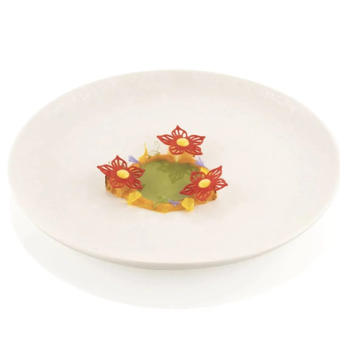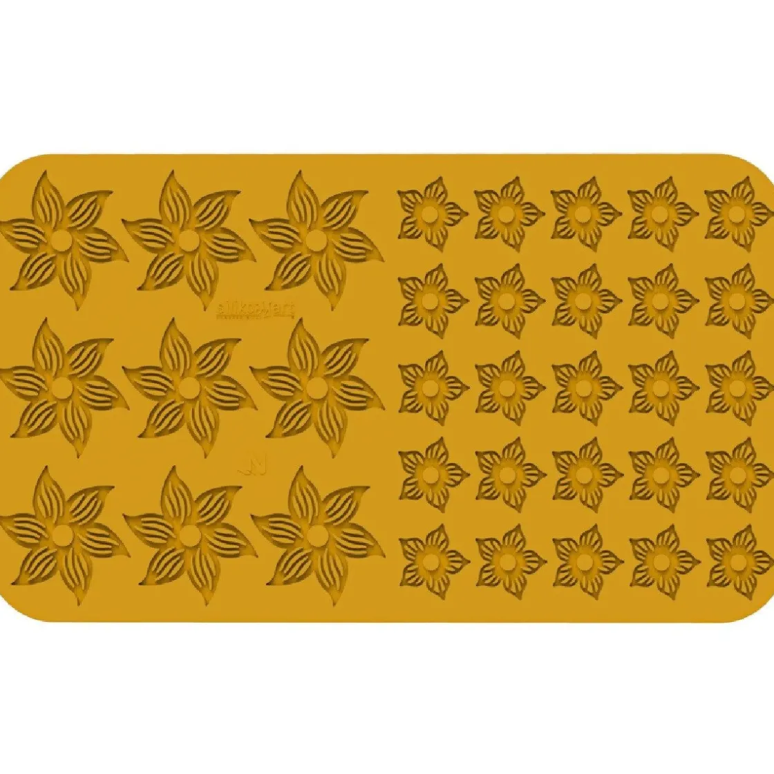 Met de Silikomart Siliconen Mat Botanica (34x) Ø8,4×0,2cm kun je prachtige decoraties van diverse materialen maken. De siliconen mat bevat verschillende formaten bloemen. Leuk om baksels en gerechten af te werken.