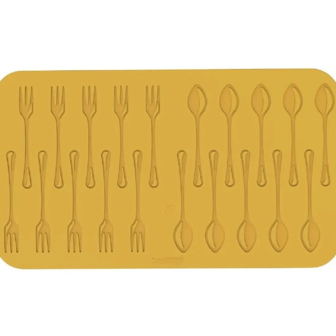 De Silikomart Siliconen Mat Coperto (20) is een siliconen mat met 20 gedetailleerde holtes in de vorm van lepels en vorken. Elke vorm is ongeveer 14 cm lang en ideaal voor het maken van eetbare decoraties, zoals fijne koekjes van tuilebeslag of chocoladevormen.