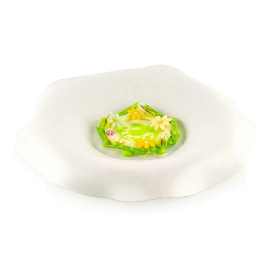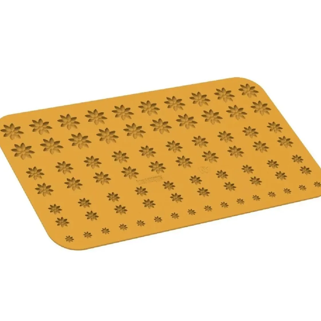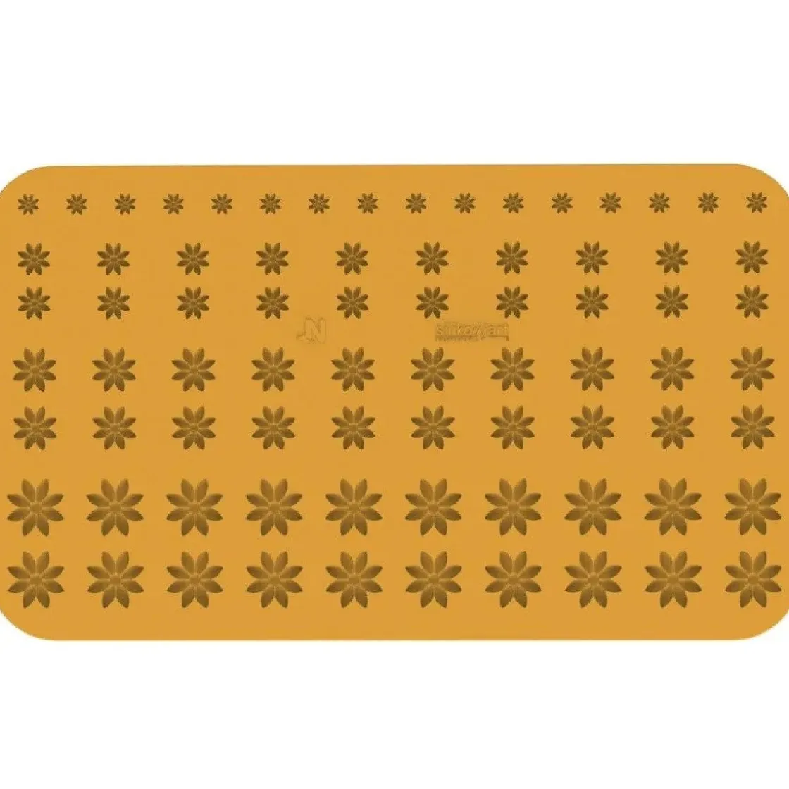 De Silikomart siliconen mat Margherita (76) is een decoratiemat met 76 bloemvormige holtes in verschillende groottes. De speelse margrietvormen zijn gedetailleerd uitgewerkt en bieden allerlei mogelijkheden voor het maken van verfijnde, eetbare bloemdecoraties.