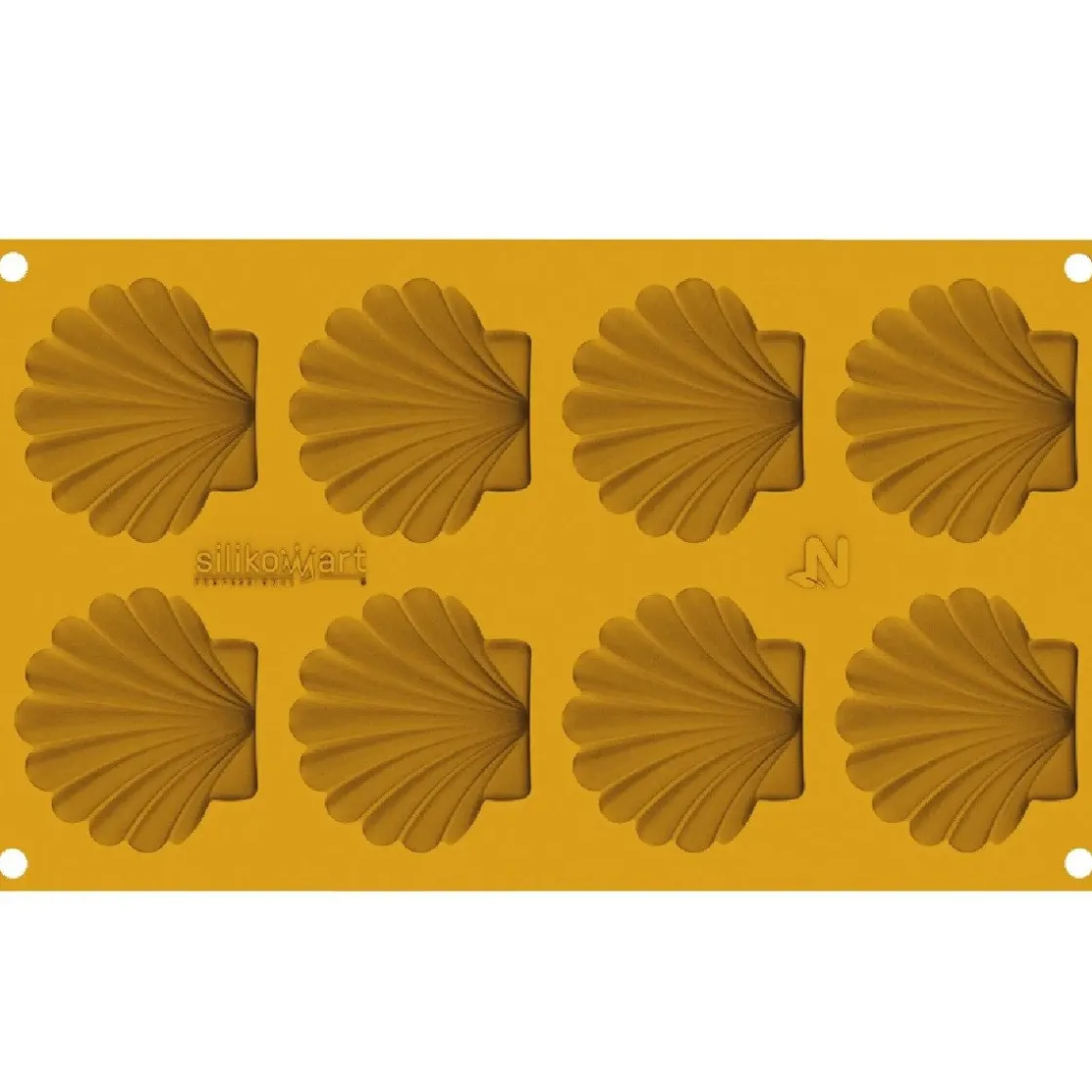 De Silikomart Siliconen Vorm Schelp (8x) 7,2×6,5×0,9cm is perfect om decoraties, baksels of desserts mee te creëren. Deze mal bevat 8 schelpvormige holtes. Elke schelp heeft een afmeting van 7,2 bij 6,5 centimeter en een hoogte van 0,9 centimeter.