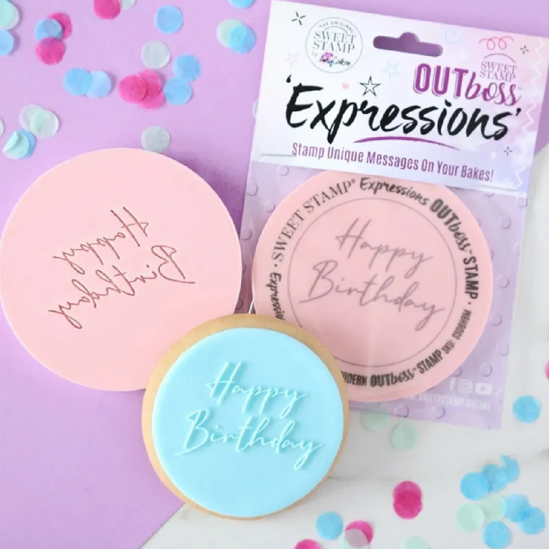 De Sweet Stamp Outboss Modern Happy Birthday is gemaakt van hoogwaardig en gecertificeerd voedselveilig plastic.