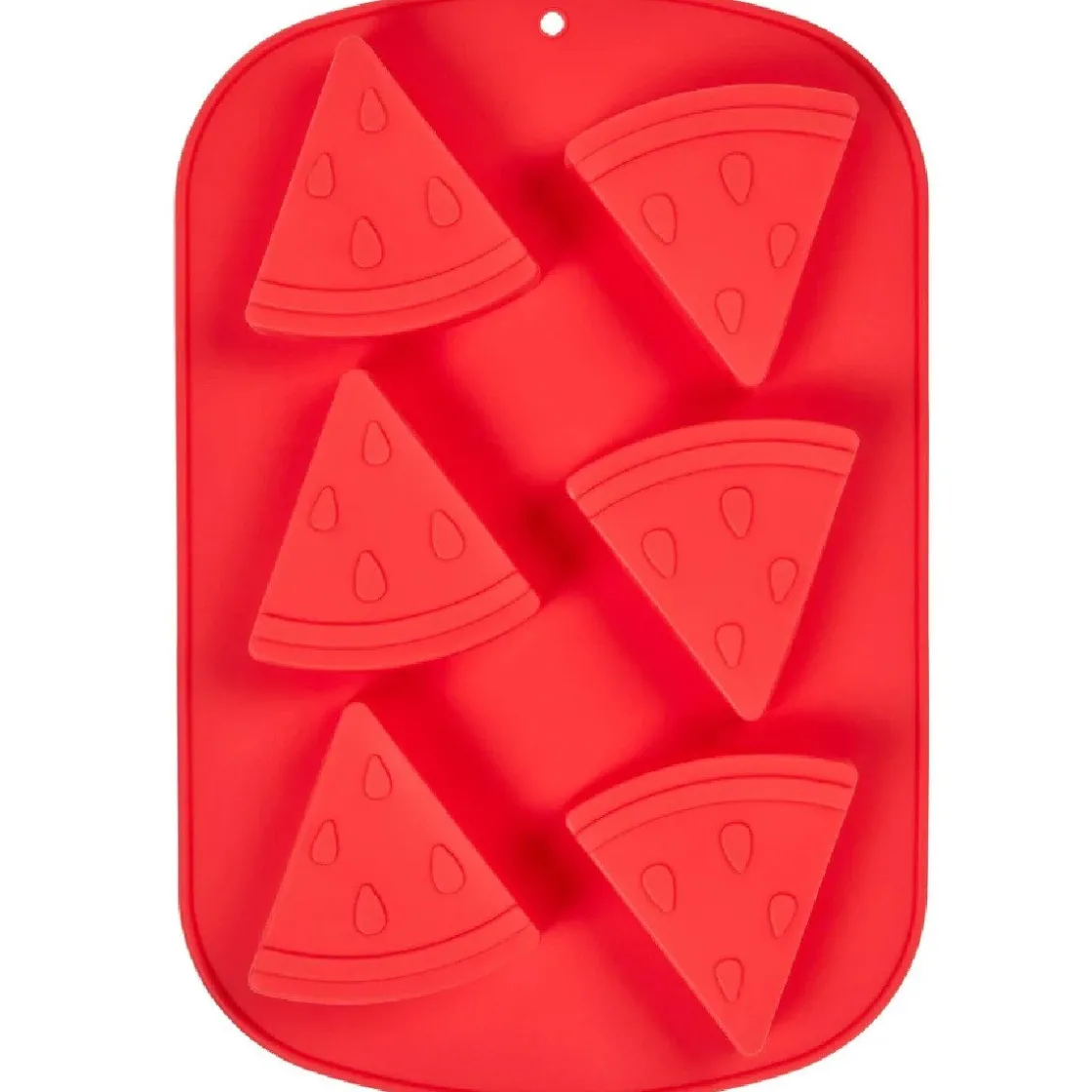 De Tala Siliconen IJsblokjesvorm Watermeloen (6) is een opvallend rode siliconen mal en heeft ruimte voor 6 vrolijke partjes watermeloen. Deze is gemaakt van soepel, hittebestendig materiaal. Door de flexibele vorm haal je je creaties er gemakkelijk uit.