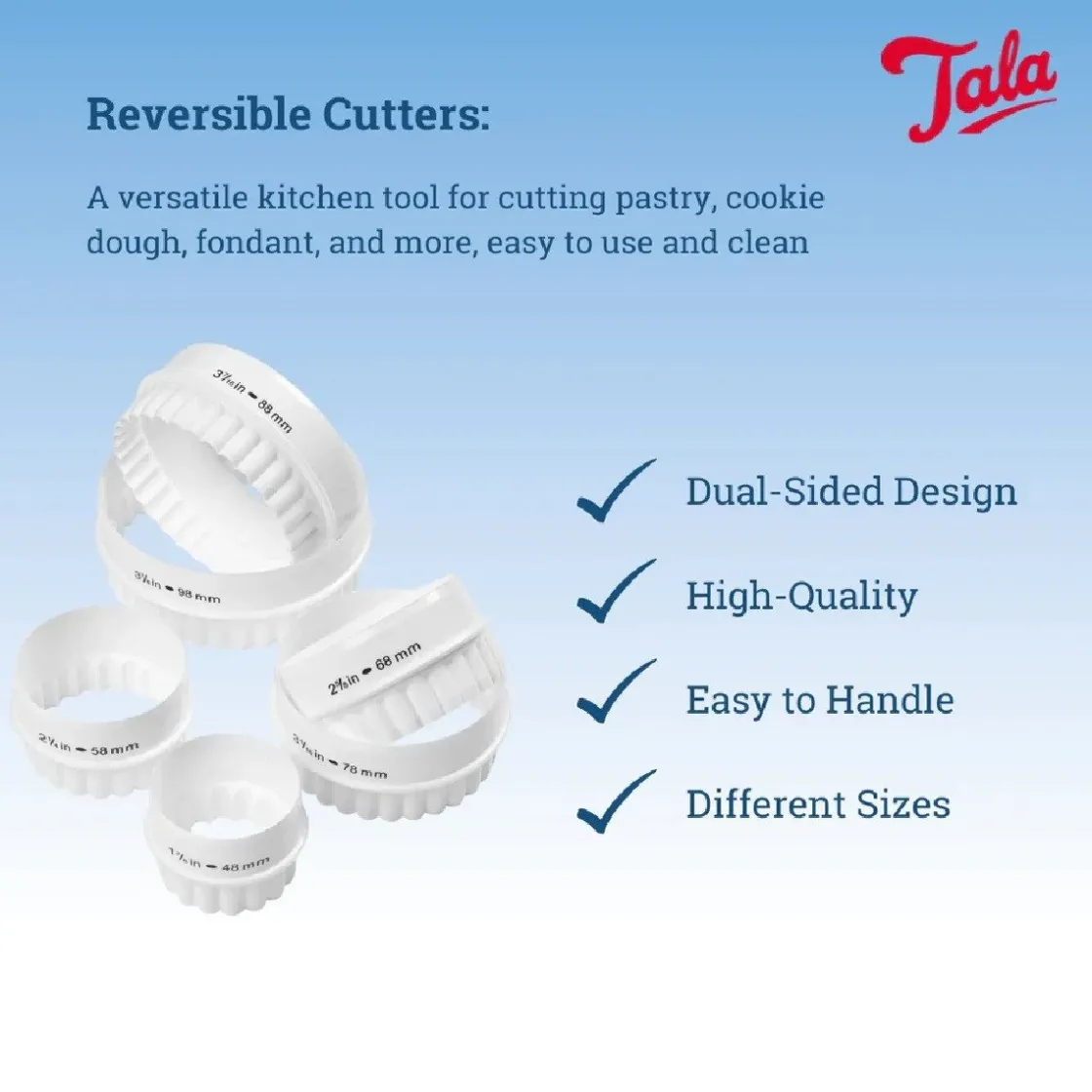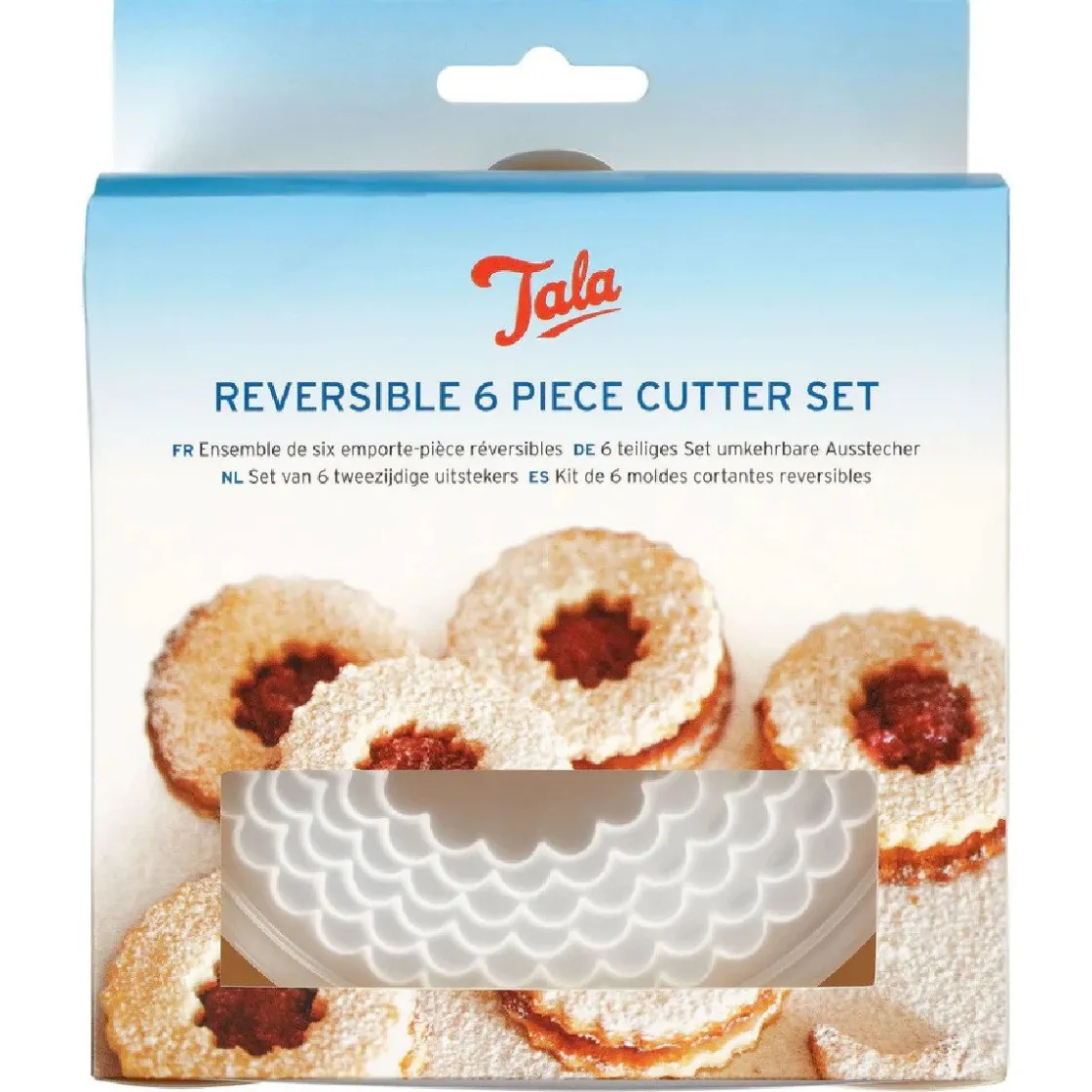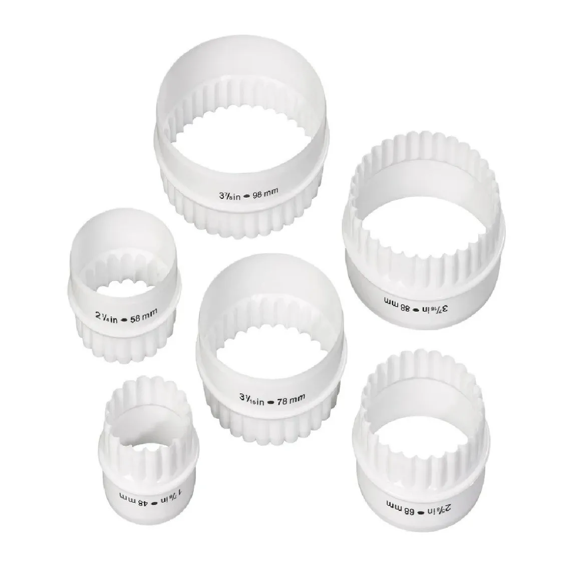 De Tala Uitstekers Rond (Glad & Kartel) Kunststof Set/6 bestaat uit zes stevige uitstekers in verschillende maten, met zowel een gladde als gekartelde rand. Ze worden geleverd in een handige opbergdoos.