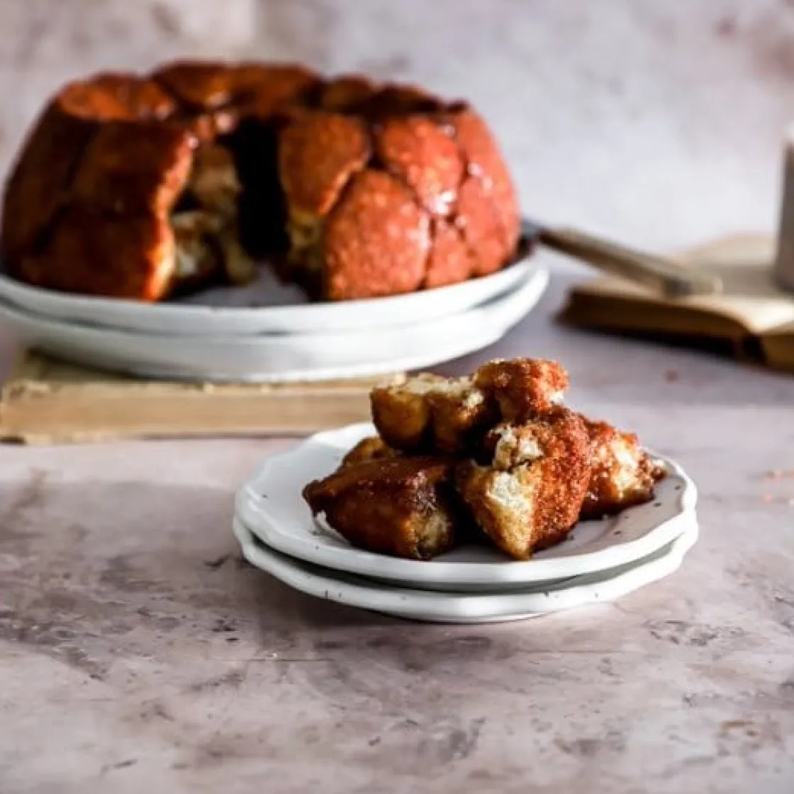 - Los de cake op een bord.