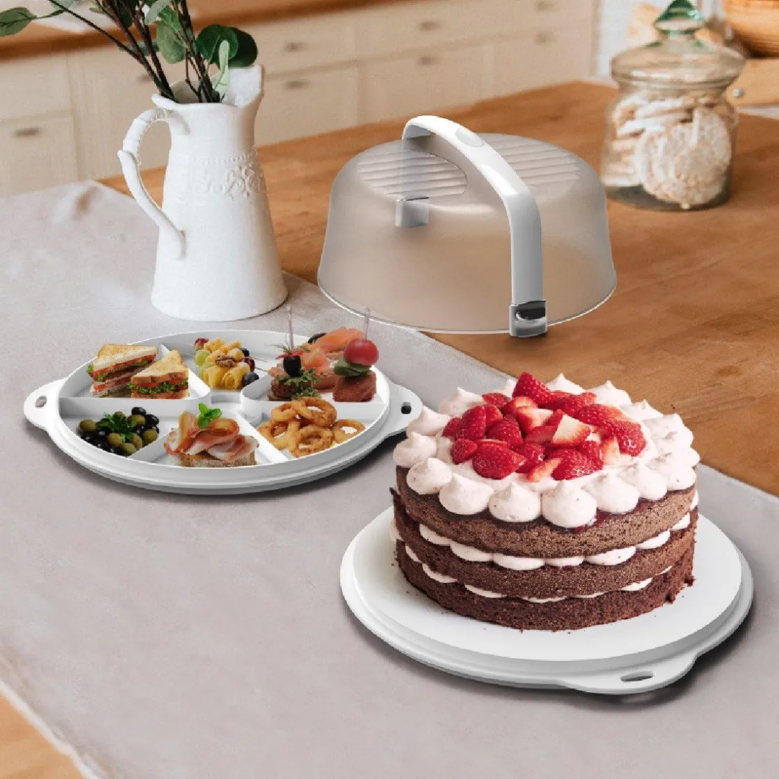 Met een ruime doorsnede van 30 centimeter en een hoogte van 10 centimeter. Perfect voor feestjes, picknicks of wanneer je je baksels wilt meenemen.