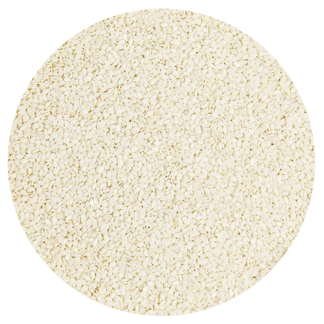 Sesam is een plant uit de familie Pedaliacease. Het soort hoort tot de oudste om de olie gekweekte gewassen van de wereld. Dit gepelde sesamzaad kan worden gebruikt ter verfijning van brood, gebak en voor het kruiden van gerechten.
