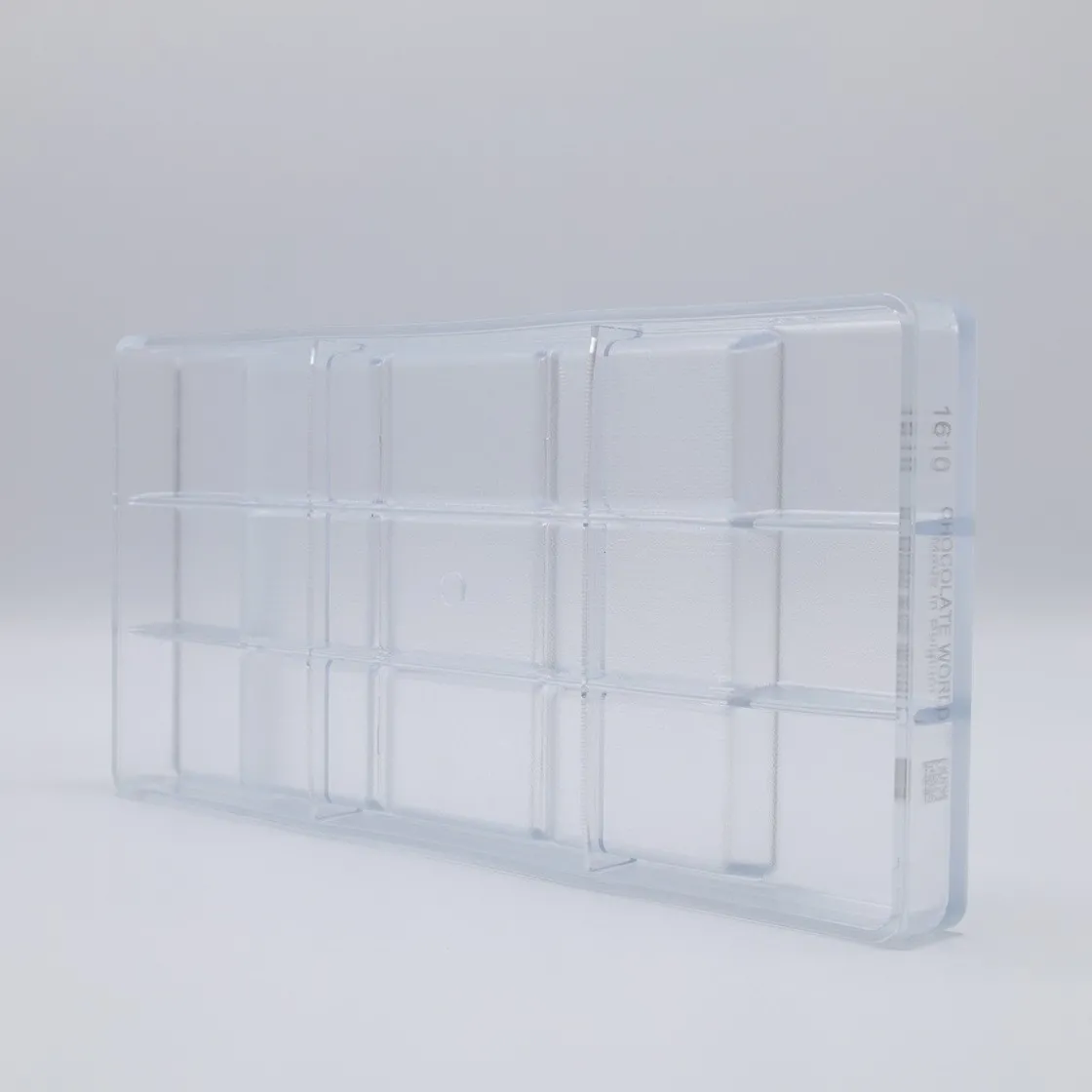 Met behulp van de Chocolademal Chocolate World Tablet 173x119x15mm kun je zelf aan de slag met chocolade. De vorm bestaat uit 1 tablet, die verdeeld is in 9 blokken. De totale afmeting van de vorm is 27,5 bij 13,5 centimeter. De afmeting van de tablet is iets minder groot, namelijk 17,3 bij 11,9 centimeter.