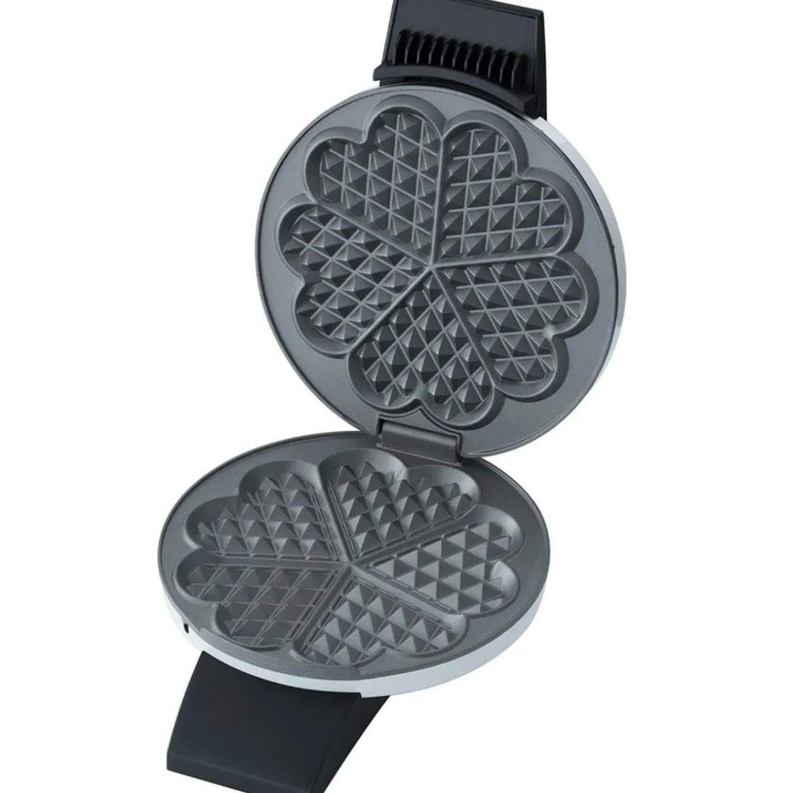 Met het Cloer Wafelijzer Hart maak je heerlijke wafels in hartvorm. De behuizing is gemaakt van wit gelakt metaal en het ijzer heeft aan de binnenkant een antiaanbaklaag. Hierdoor kun je met dit apparaat gemakkelijk vetarm bakken en is het ijzer ook eenvoudig schoon te maken. Het apparaat is perfect om heerlijke wafels voor geliefden te maken, maar natuurlijk ook voor jezelf. Het is helemaal lekker om zelfgebakken wafels te serveren met bijvoorbeeld aardbeien, frambozen, bananen of andere vers fruit.