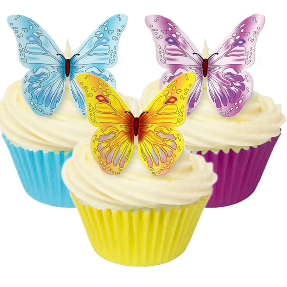 Versier jouw cupcakes, taarten en andere lekkernijen met deze prachtige vlinders in verschillende kleuren (zoals bijvoorbeeld, blauw, geel een paars). De vlinders zijn gemaakt van eetbaar papier. Dit pakket bevat 12 verschillende vlinders. Dat wordt smullen!