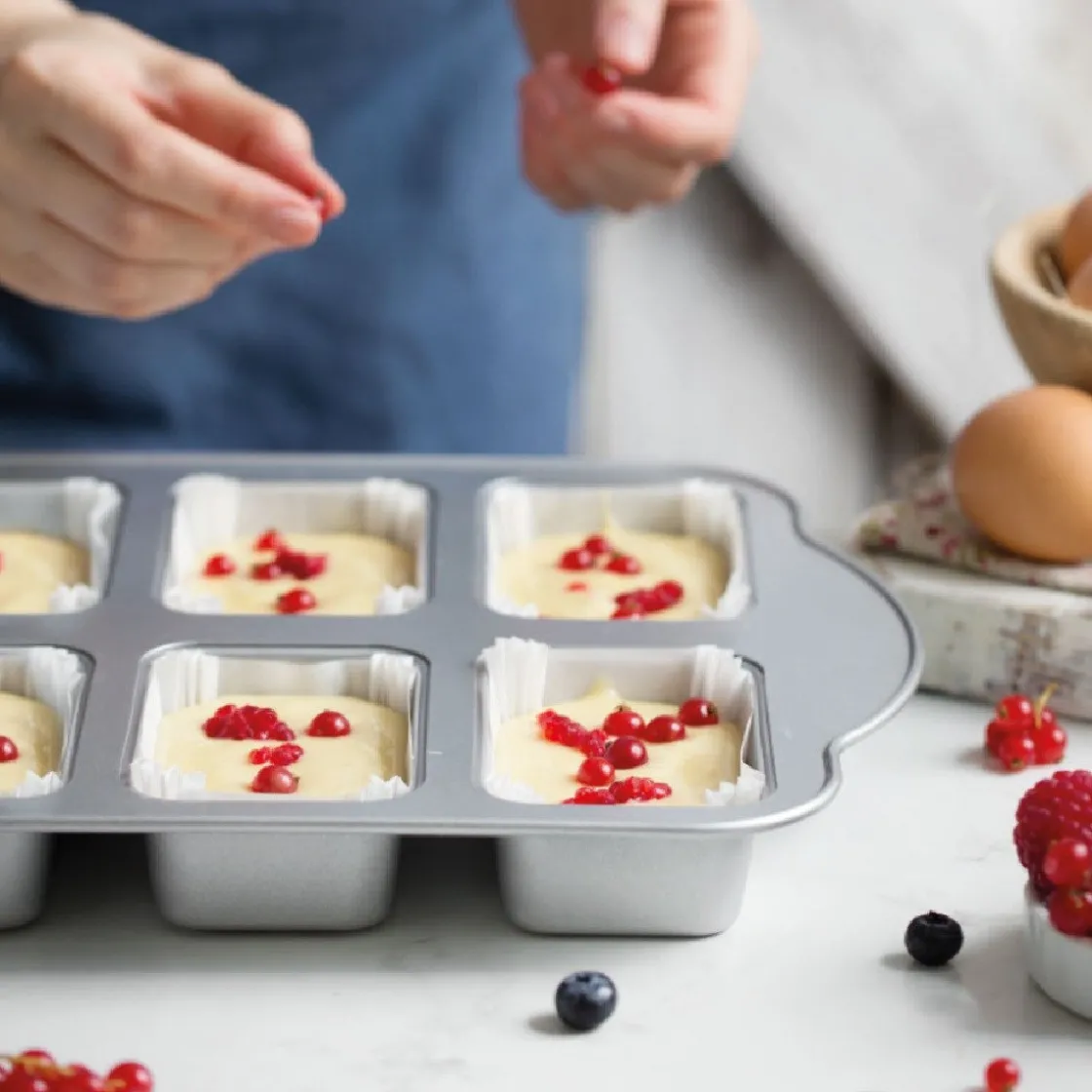 De Mini Plumcake Bakvorm 9,5×6,3cm 8st is geschikt om kleine cakejes mee te bakken. Elk cakeje krijgt een afmeting van circa 9,5 bij 6,3 centimeter. Een perfect formaat voor een 1-persoons lekkernij. Totaal is er ruimte om 8 cakjes te bakken.