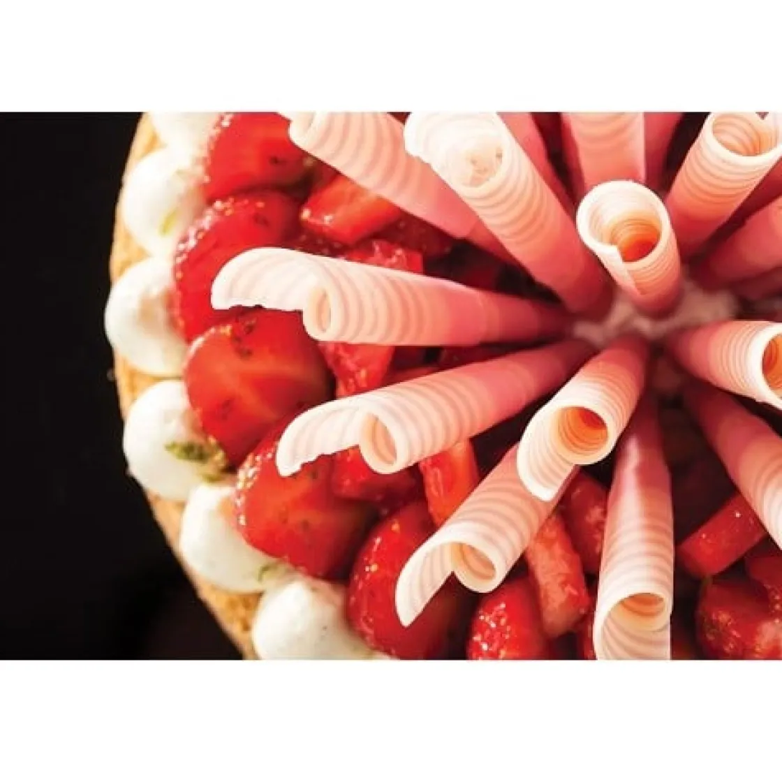 Deze smaakvolle chocoladedecoratie van gekleurde witte chocolade is de perfecte finish voor je dessert of gebak!