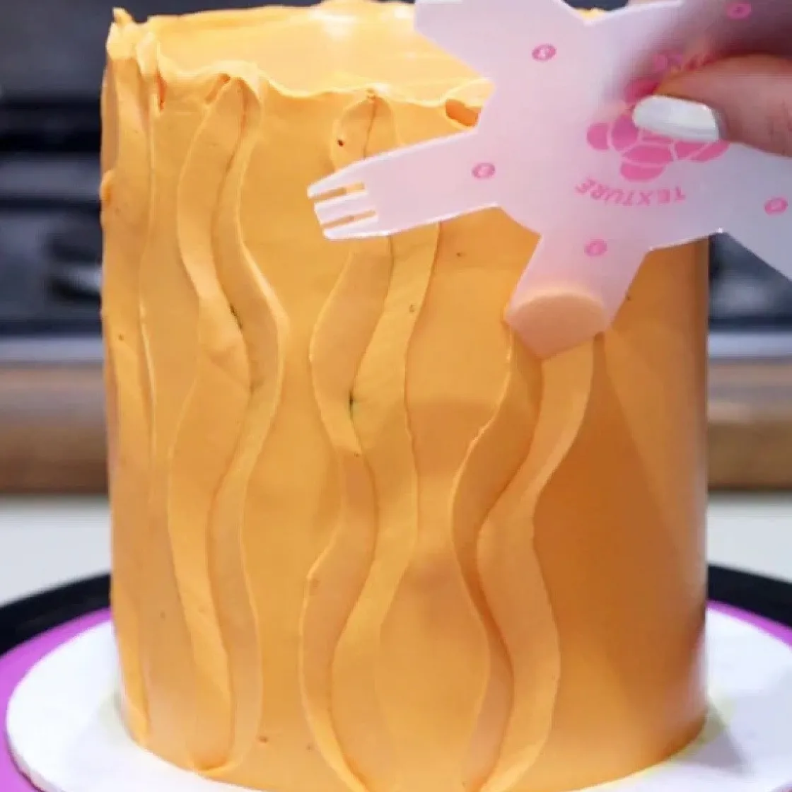 De 6-in-1 garneerkrabber beschikt over verschillende kanten, elk met een andere patroon. Hiermee kun je variëren tussen fijne lijntjes, golvende structuren, strakke randen en grovere texturen. Ideaal voor het decoreren van zowel stapeltaarten als kleinere gebakjes. Gebruik de garneerkrabber met botercrème, ganache of andere coatings. Versier je lekkernij bijvoorbeeld met een een moderne streep of een speelse zigzagstructuur.