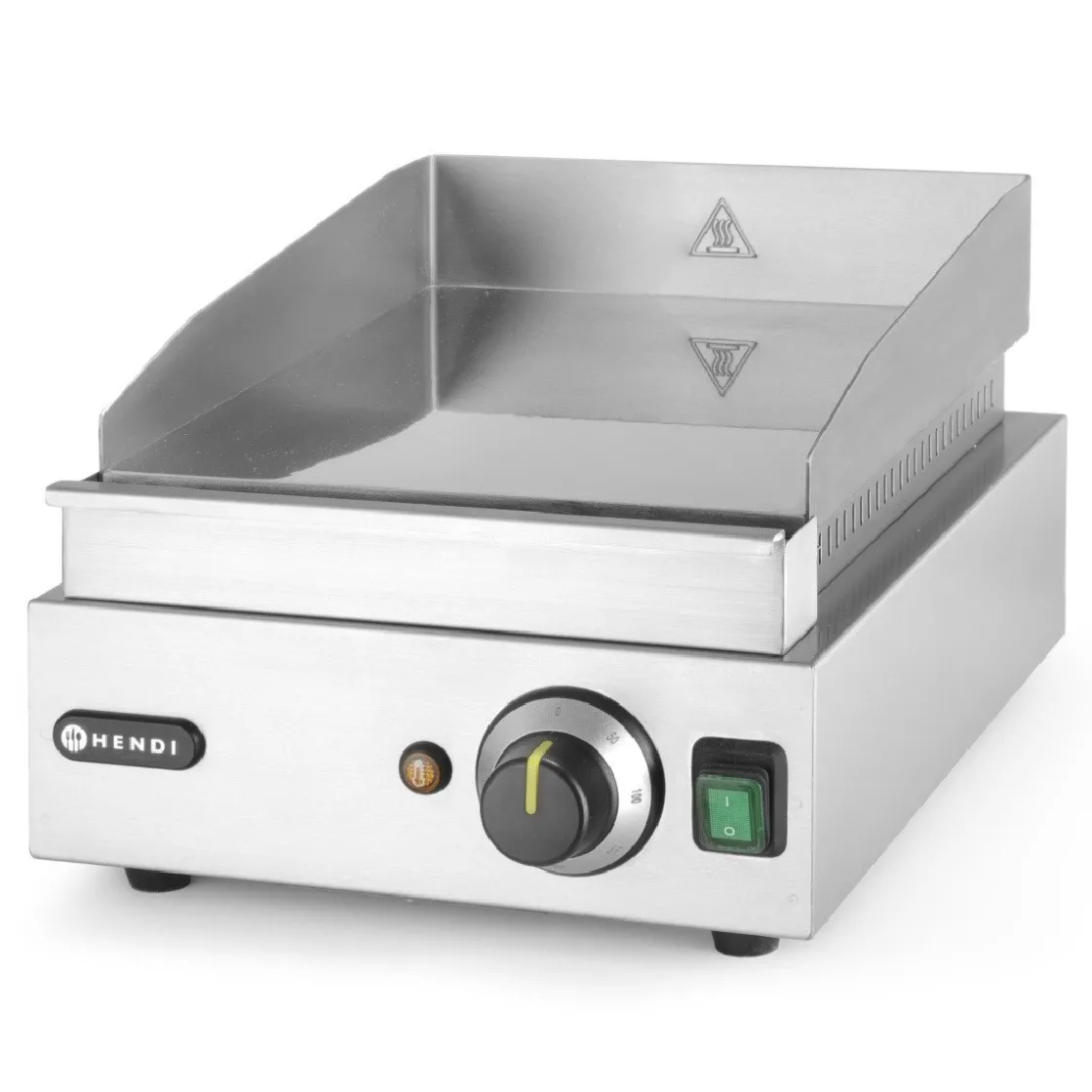 De Hendi Bakplaat Glad Profi Line 330×270 mm heeft een gladde grill oppervlak van 33 bij 27 centimeter. De plaat is hard verschroomd en daardoor gemakkelijk schoon te maken. Rondom de plaat zitten spatranden en voor het vet is aan de voorkant een opvangbak aanwezig. De temperatuur is instelbaar met de zwarte knop tot maximaal 300 graden.
