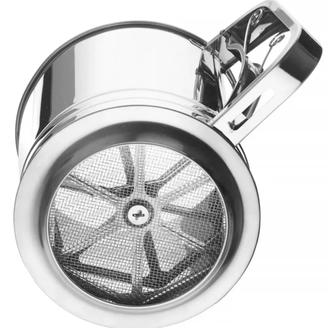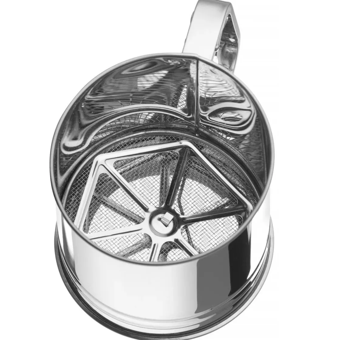 Deze zeef is gemaakt van RVS en heeft een extra fijn gaas. Verder heeft de zeef ruimte voor ongeveer 550 gram bloem. Een super fijn hulpmiddel bij het bakken!
