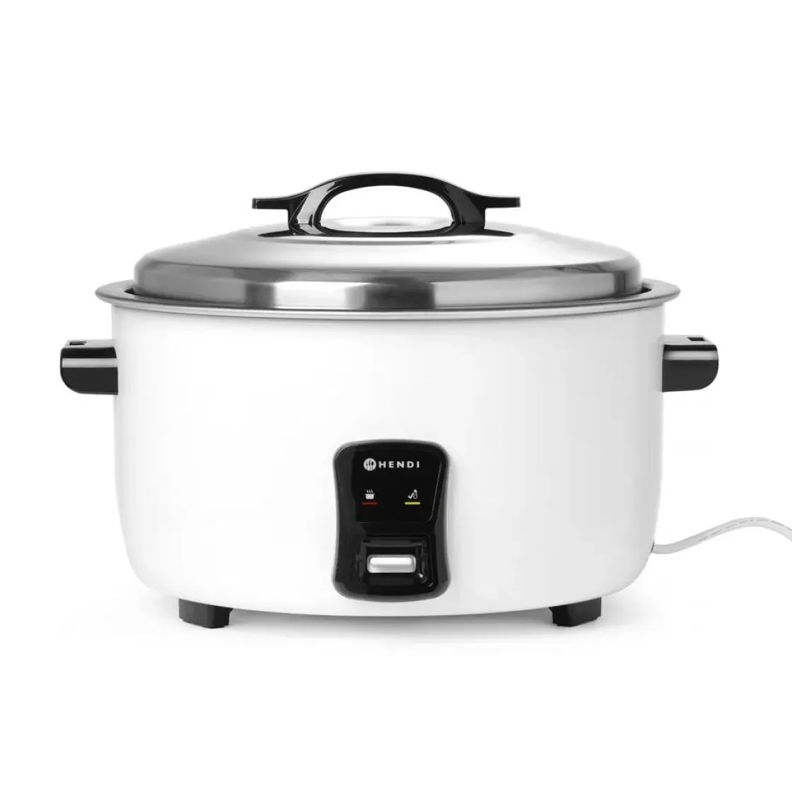 Behuizing van witgelakt gewalst staal, gemakkelijk schoon te maken. Binnenpan van aluminium met antiaanbaklaag, gemakkelijk schoon te maken. Het roestvrijstalen deksel met draaisluiting is voorzien van een koelblijvende handgreep. De handgrepen hebben een speciaal ontwerp waardoor ze kunnen fungeren als dekselhouder, zodat je een heet deksel veilig kunt opbergen en de deksel altijd bij de hand hebt. Deze uitvoering is vervaardigd uit niet-verwarmend, duurzaam polypropyleen. Twee modi – koken en warmhouden; na het koken gaat het apparaat in de warmhoudmodus. Capaciteit: 50 lepels droge rijst (≈100 porties gekookte rijst). Inbegrepen: rijst maatbeker en lepel. Nettogewicht: 10,35 kg.