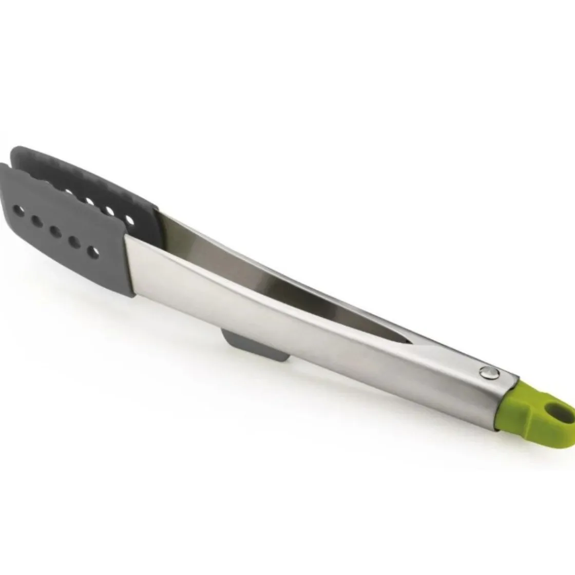 De Joseph Joseph Keukentang Siliconen met Steun 30,5cm heeft een vormgeving die de hygiëne verbeterd en geknoei verminderd. Dit komt door de handige steun die aan de tang is bevestigd. Door deze steun raakt de onderkant van de tang het werkoppervlak niet. Verder kun je de tang ook gemakkelijk vastzetten door de pin naar boven te trekken. De tang is bestand tegen 270°C.