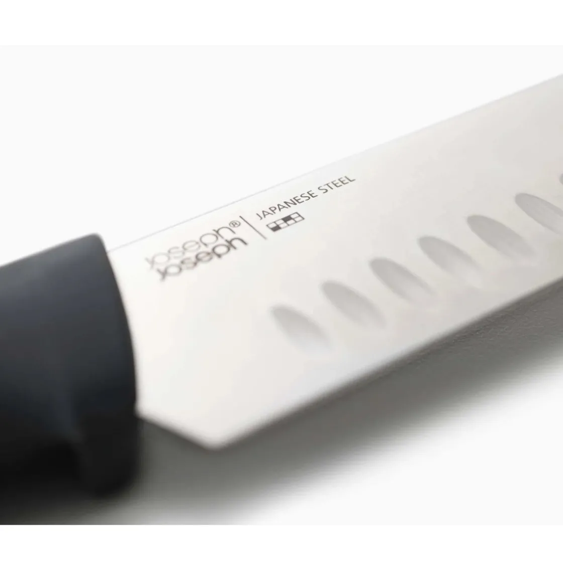 De messenset bestaat uit een schilmes van 9 centimeter, een gekarteld mes van 11,5 centimeter, een santoku mes van 14 centimeter en een koksmes van 16,5 centimeter. De messen zijn gemaakt van japans staal en dienen met de hand te worden afgewassen.