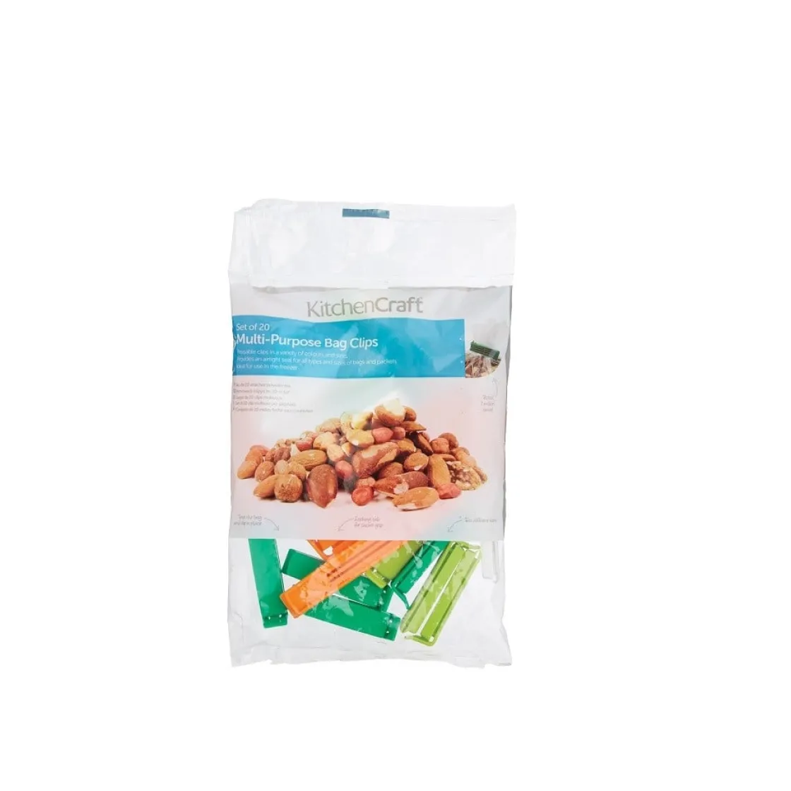 Handige clipjes voor het dichtmaken van zakjes. Deze plastic clips zijn makkelijk in gebruik. Ze worden geleverd per 20 en de set bevat 5 grote clips en 15 kleinere clips.