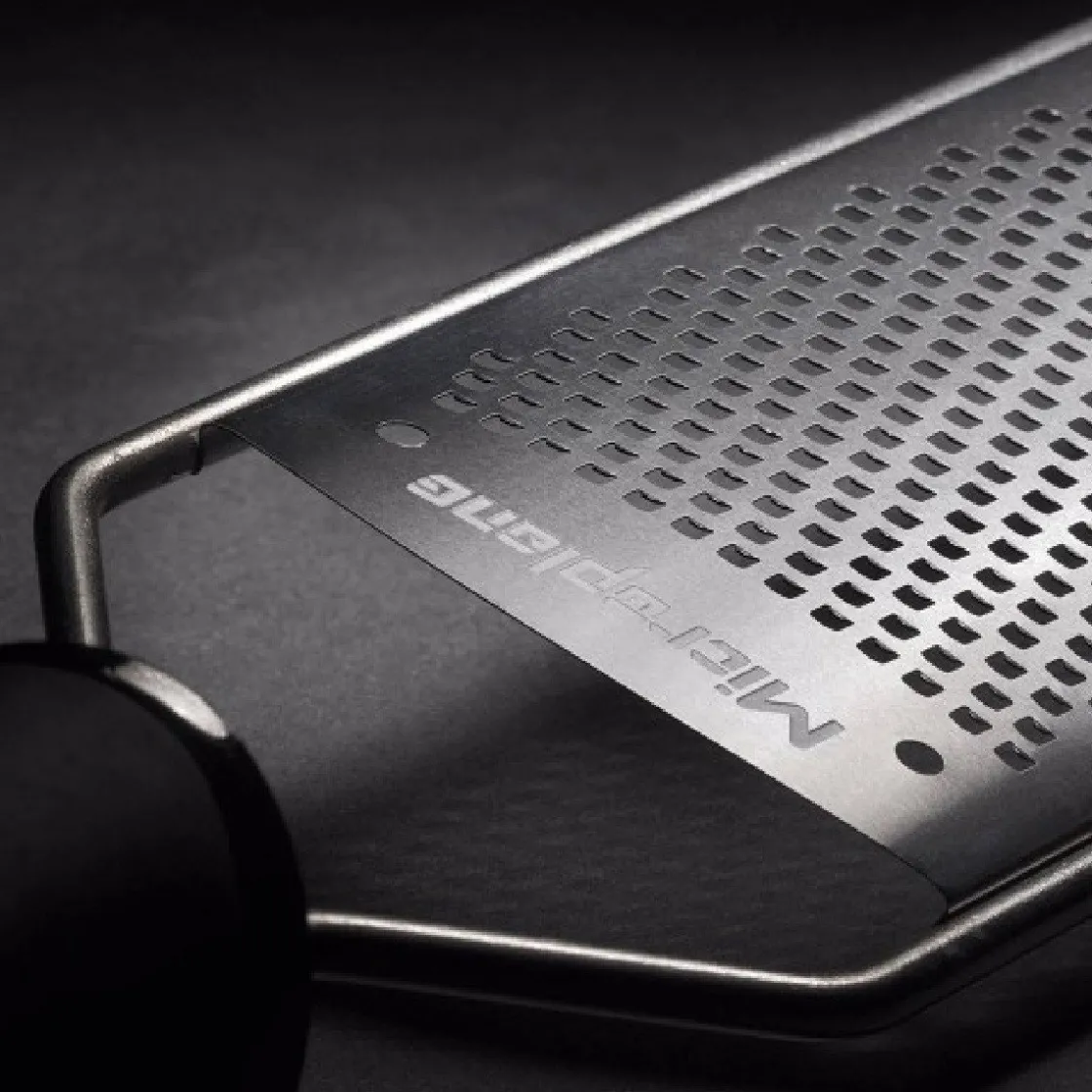 De Microplane Gourmet Rasp Fijn is een rasp uit de Gourmet serie van Microplane. Deze collectie bevat raspen met verschillende soorten snijvlakken. Deze rasp heeft fijne snijvlakken. Perfect om verschillende voedingsmiddelen fijn te malen. Gebruik deze onder andere voor citrusvruchten, kaas, chocolade, gember knoflook en nog veel meer.