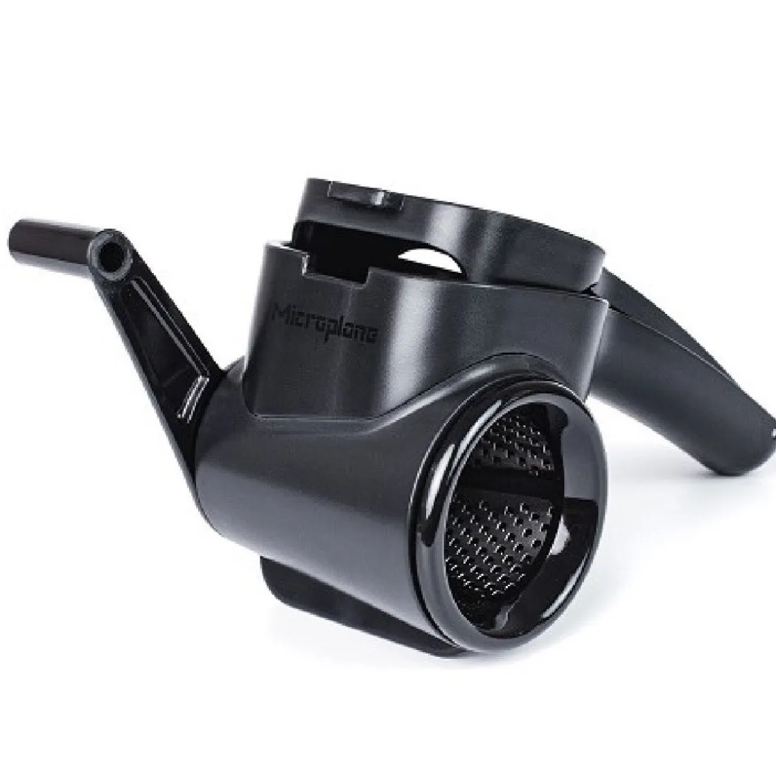 De Microplane Rasp Roterend is handig voor grotere hoeveelheden voedingsmiddelen. Je maalt de voedingsmiddelen fijn door het draaien aan de hendel die aan de zijkant is bevestigd. De rasp heeft vlijmscherpe en fijne snijvlakken. Deze roterende Microplane rasp is ideaal voor raspen van onder ander harde kazen, chocolade en noten.