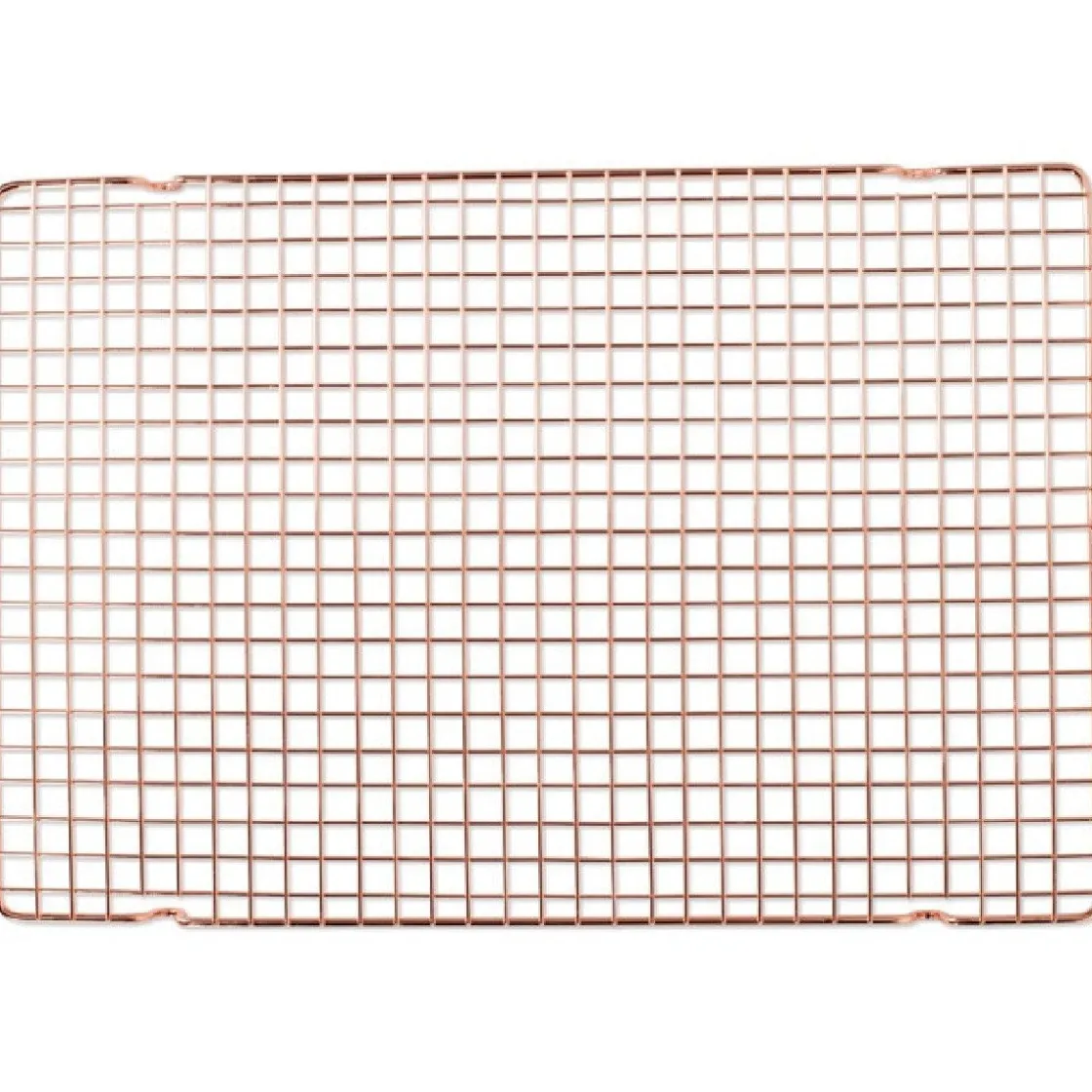 Het Nordic Ware Koel / Druip Rek Koper 45,5x29cm is praktisch en heeft een prachtige uitstraling. Het rek is namelijk voorzien van een opvallende koperkleurige coating. Door het formaat heeft dit rek ruim voldoende oppervlak voor het afkoelen van grotere hoeveelheden baksels. De fijne rasterstructuur zorgt ervoor dat deze ook geschikt is voor kleine koekjes of delicate baksels. Daarnaast zorgen de pootjes voor optimale luchtcirculatie rondom het baksel.
